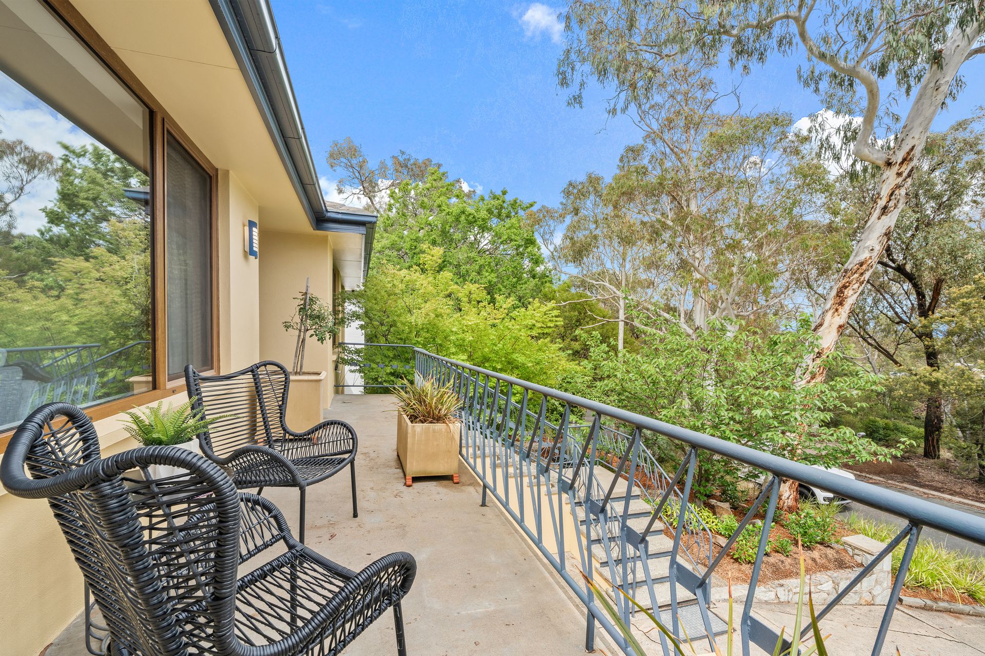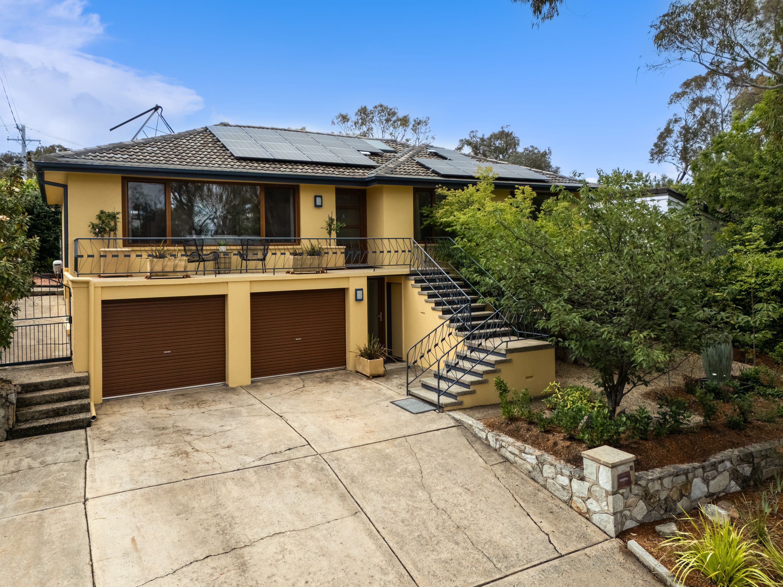 * Located on the high side of the street with distant views * Welcoming front porch - perfect locale for watching sunsets * Formal entrance with retro timber wall panelling * Four bedrooms; three with built in robes * Living room with retro glass doors and magnificent views to the Brindabellas * Two segregated living areas * Warm solid oak timber flooring * uPVC double glazed tilt & turn windows throughout * Open plan kitchen and dining room with double doors leading out to the deck * Sunlit kitchen with Miele dishwasher and Smeg 4 burner gas cooktop * Main bathroom with separate shower * Separate toilet * Evaporative cooling - upstairs * Ducted gas heating throughout * Added insulation to the ceiling and floors * Separate laundry * New guttering and fascias * Roof repointed * Two spacious outdoor entertaining areas - perfect for Christmas gatherings * Expansive new timber deck and gable roof covered pergola * 14 solar panels - 5 kW * Generous storage under staircase * Downstairs Men's Den with bar * Downstairs parents/teenagers retreat with a master bedroom, ensuite and second living area - with their own separate entrance & internal access into the main home * Delightful gardens both front and rear * Double garage with attic ladder and internal access * Productive and abundant fruit trees including Ballerina apple, peach, bay, cherry, fig, olives, apricot, mandarin, lemon, raspberries, grapefruit, chestnut and almonds * Walking distance to the popular Aranda Primary School, Canberra High & Radford College