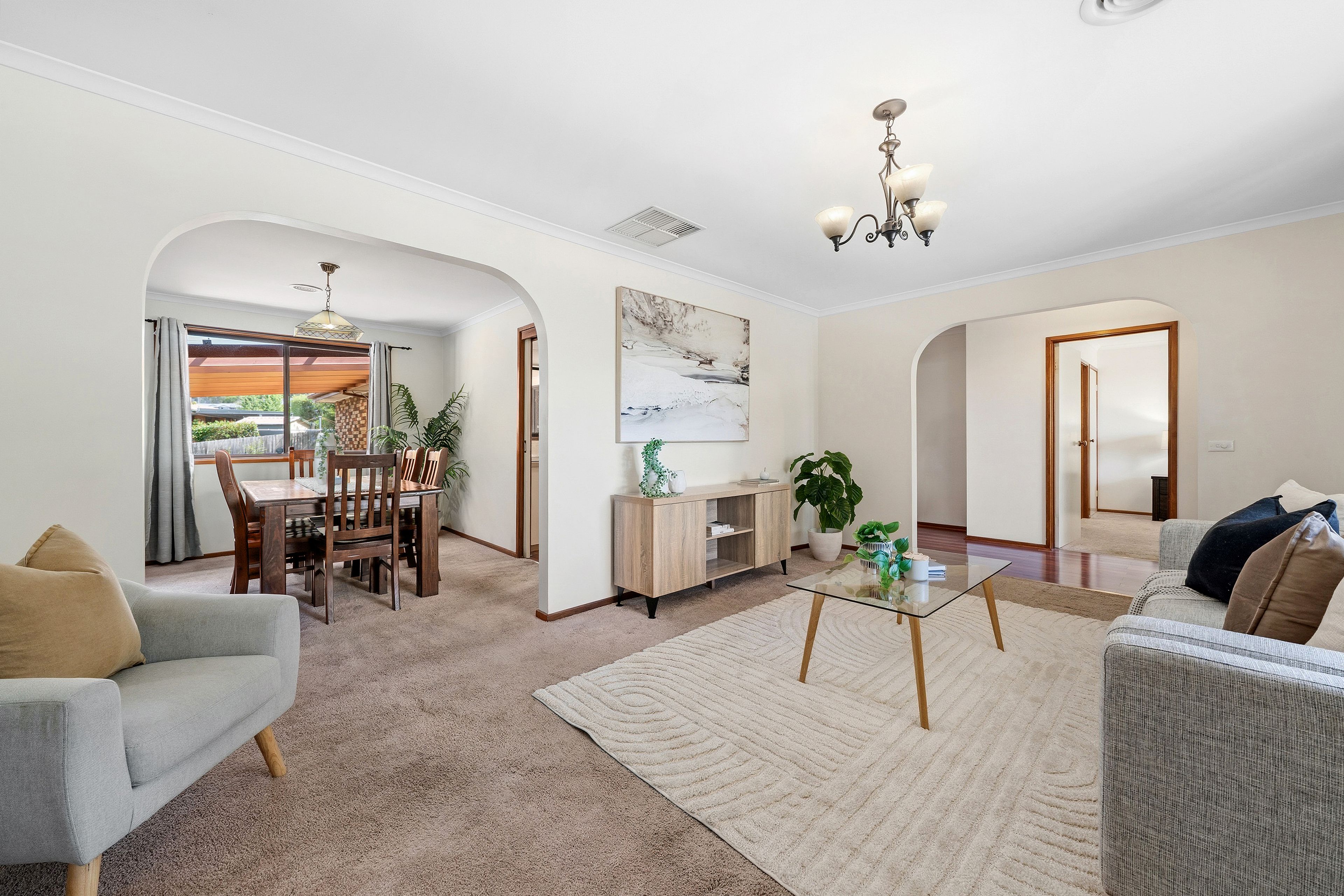From the moment you step inside, you're welcomed by a sun-soaked lounge that feels instantly like home. It flows effortlessly into a dedicated dining area and a generous kitchen, where abundant storage, wide bench space and electric cooking make everyday living simple and functional. Just beyond, a second living zone adds that extra versatility families love-perfect for movie nights, kids' space or a quiet retreat.