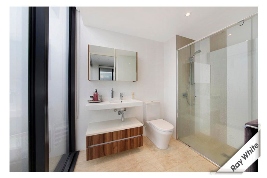 The main bedroom boasts floor to ceiling glass on two sides, offering views to die for whilst lying in bed, or taking a shower while trying to spot the wildlife on Mt Ainslie!