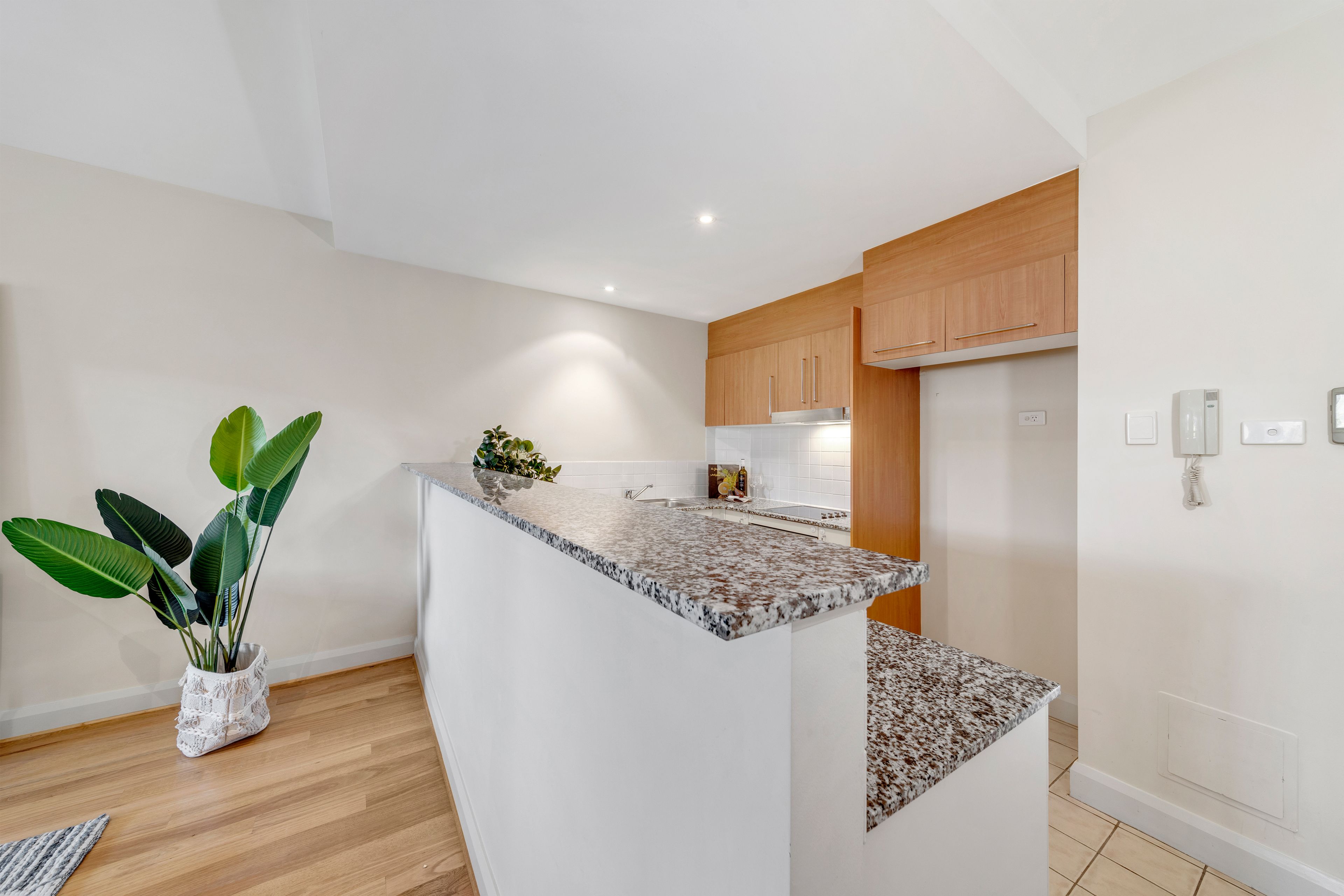 This immaculate two bedroom, two bathroom apartment is superbly located on the edge of the Parliamentary triangle. The light-filled apartment has generous living spaces and is well insulated with an energy rating of 6 stars. It offers a northerly aspect and faces the very quiet Fitzroy St, with northerly treetop views to Black Mountain Tower.