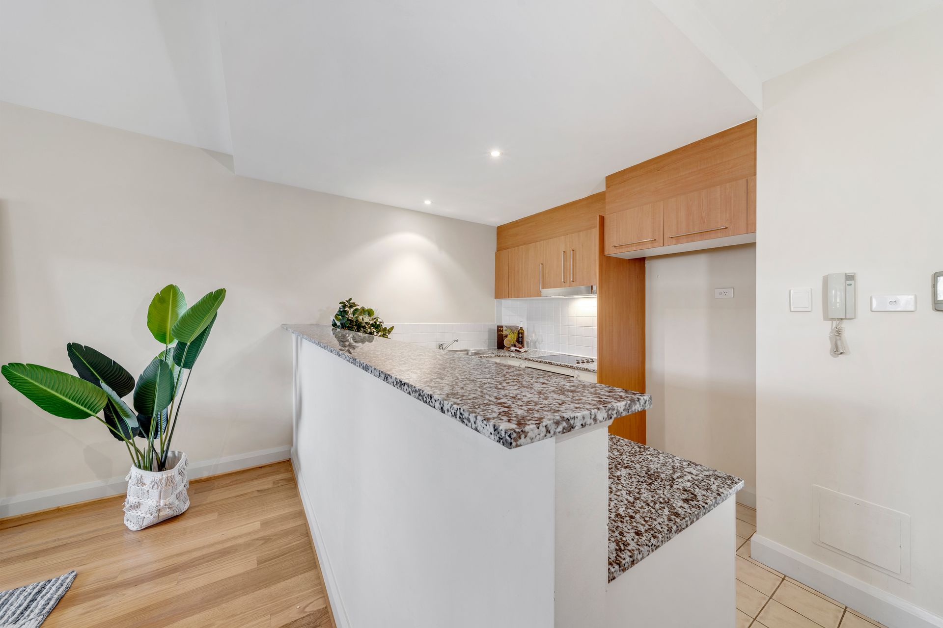 The well-equipped kitchen is perfect for the avid chef and includes stone benchtops, quality appliances and an abundance of storage. It overlooks the expansive living and dining area that flows through to the large and tranquil north facing balcony - an ideal spot for breakfast, drinks or a barbecue.