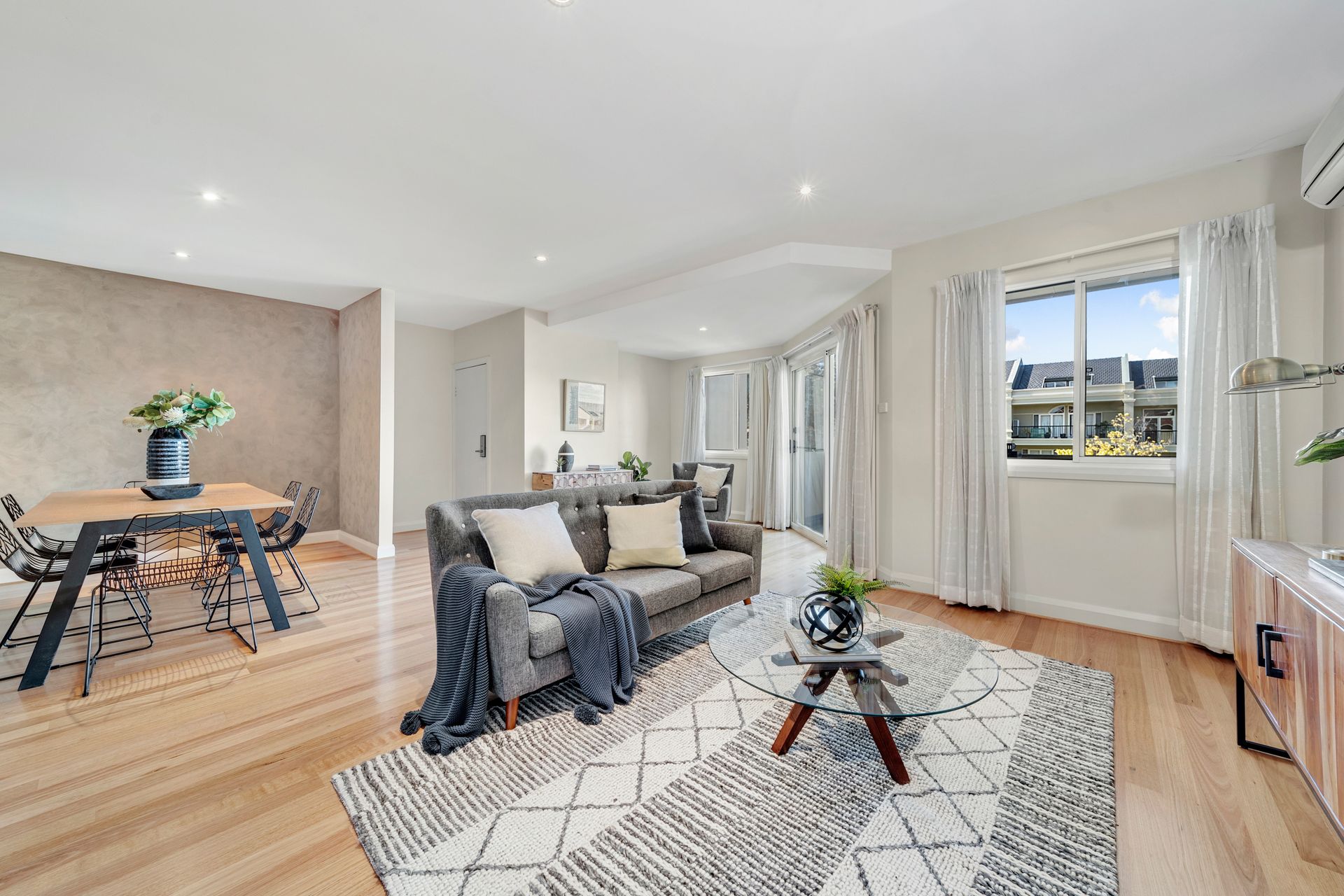 Expansive light-filled living and dining area