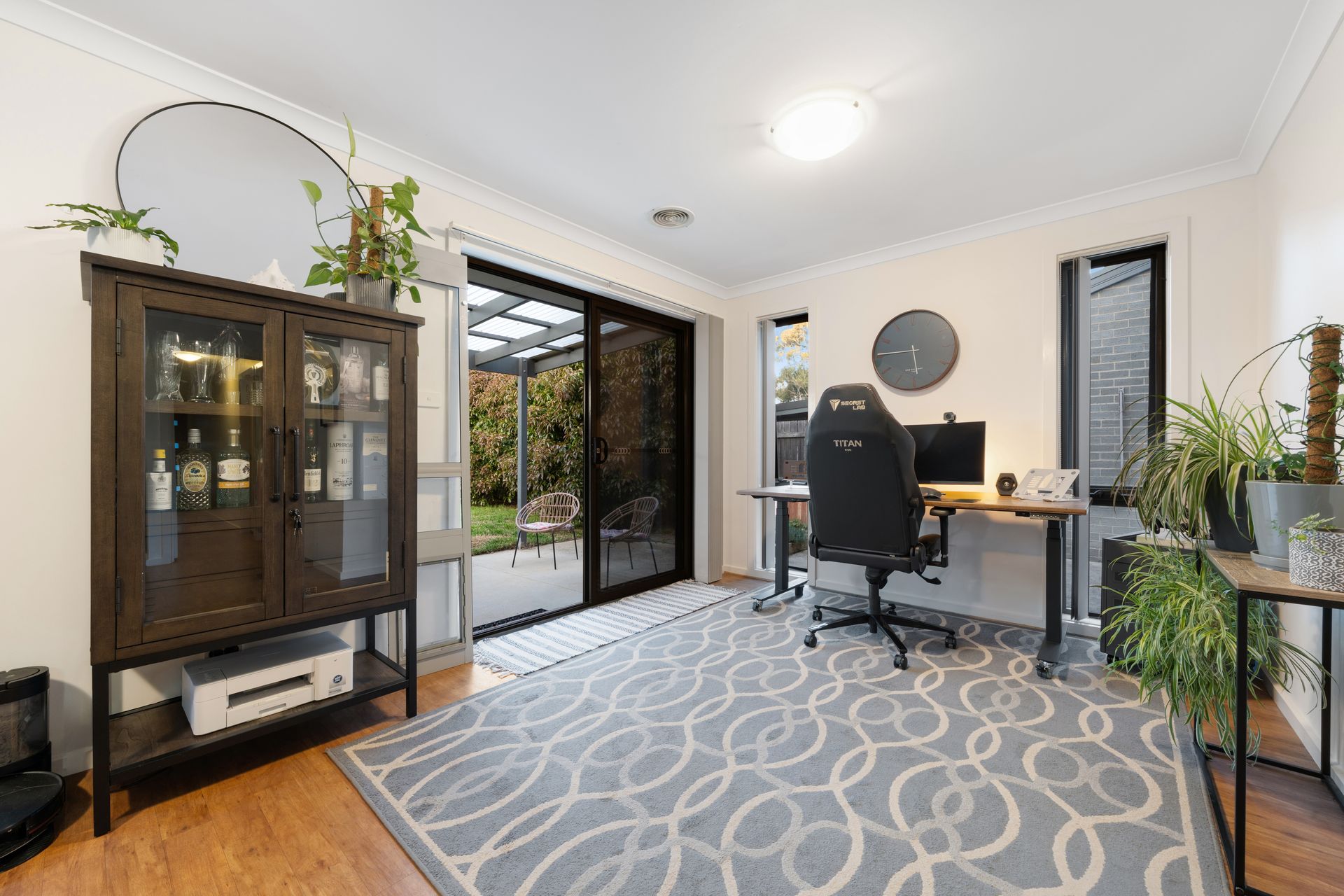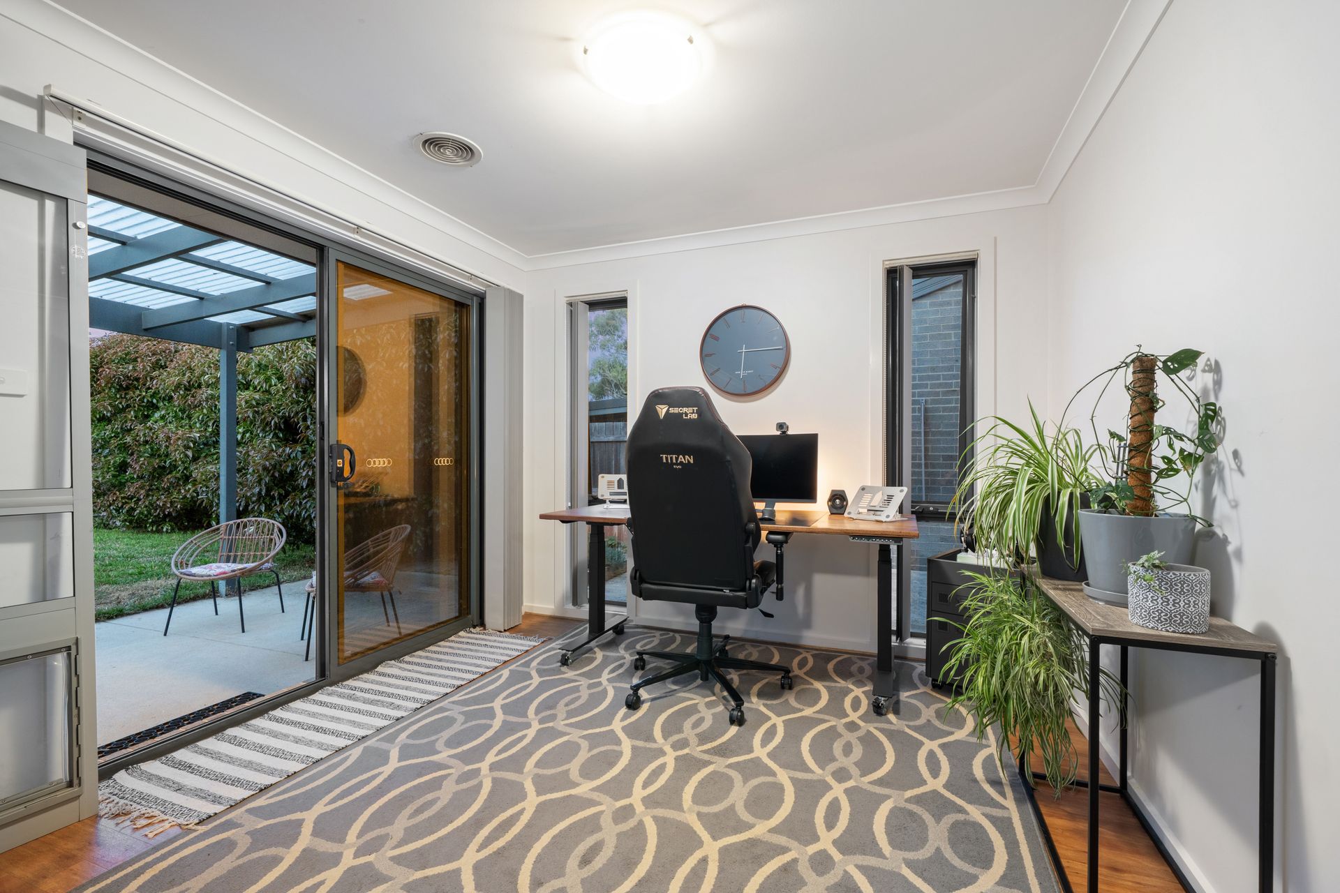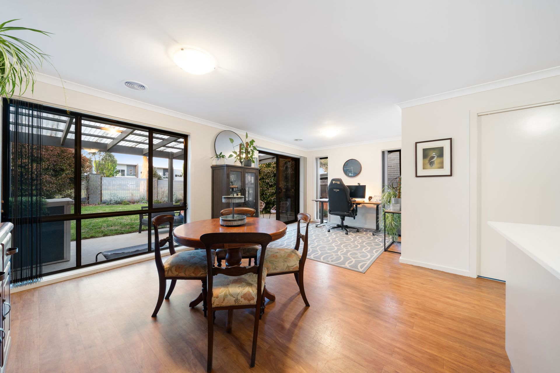 Sliding doors open to a covered patio, perfect for entertaining or relaxing in the fresh air, while the grassy, fully fenced backyard provides ample space for kids and pets to play. Low-maintenance, with established bushes for privacy, it had direct, gated access to the parkland beyond, enhancing the sense of space and inviting a leisurely weekend stroll with the dog or a bike ride.