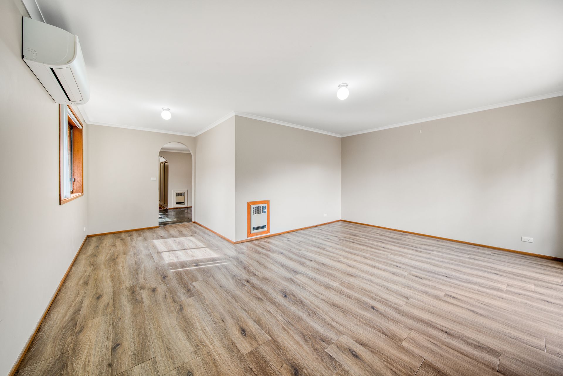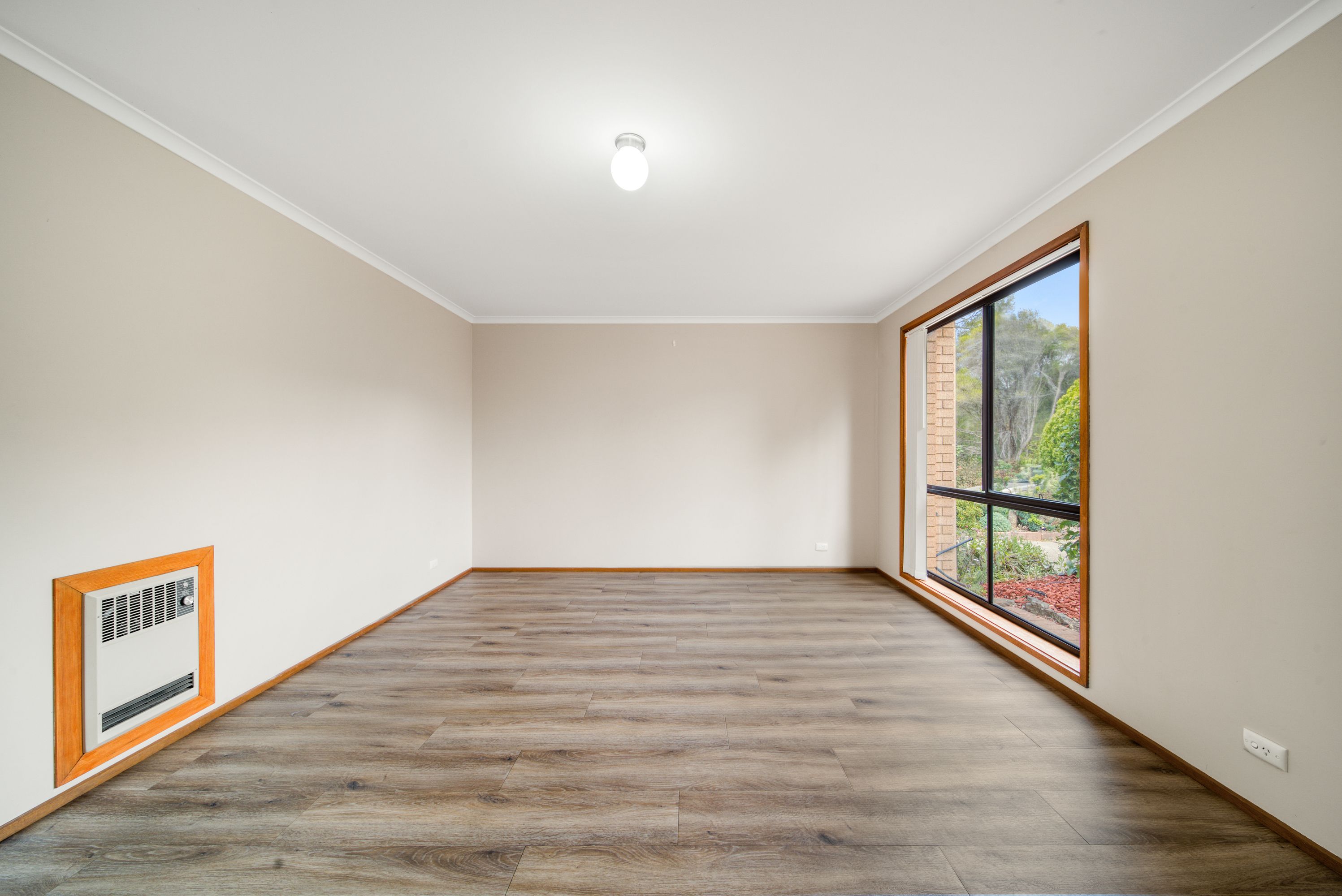 Two separate living areas Reverse cycle split system Timber laminate flooring x2 wall mounted heaters Built in robes Functional floor plan low maintenance gardens Single carport Concrete slab Electric oven