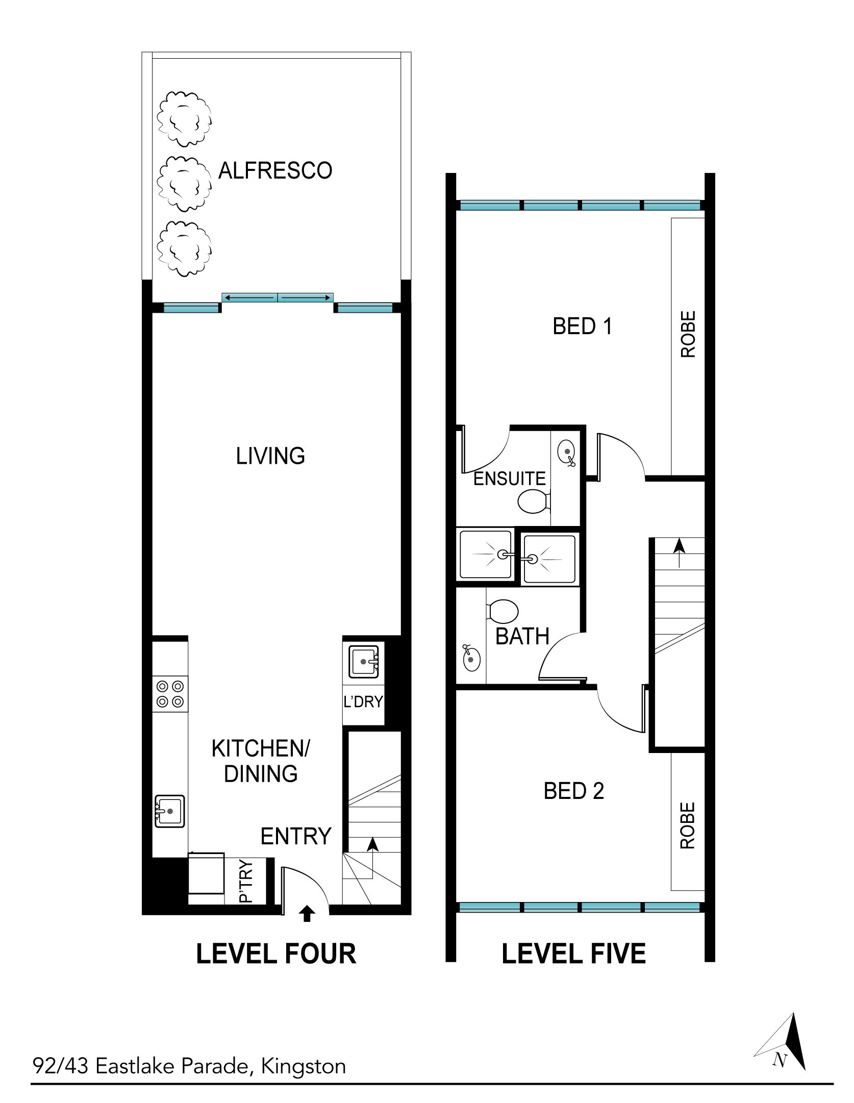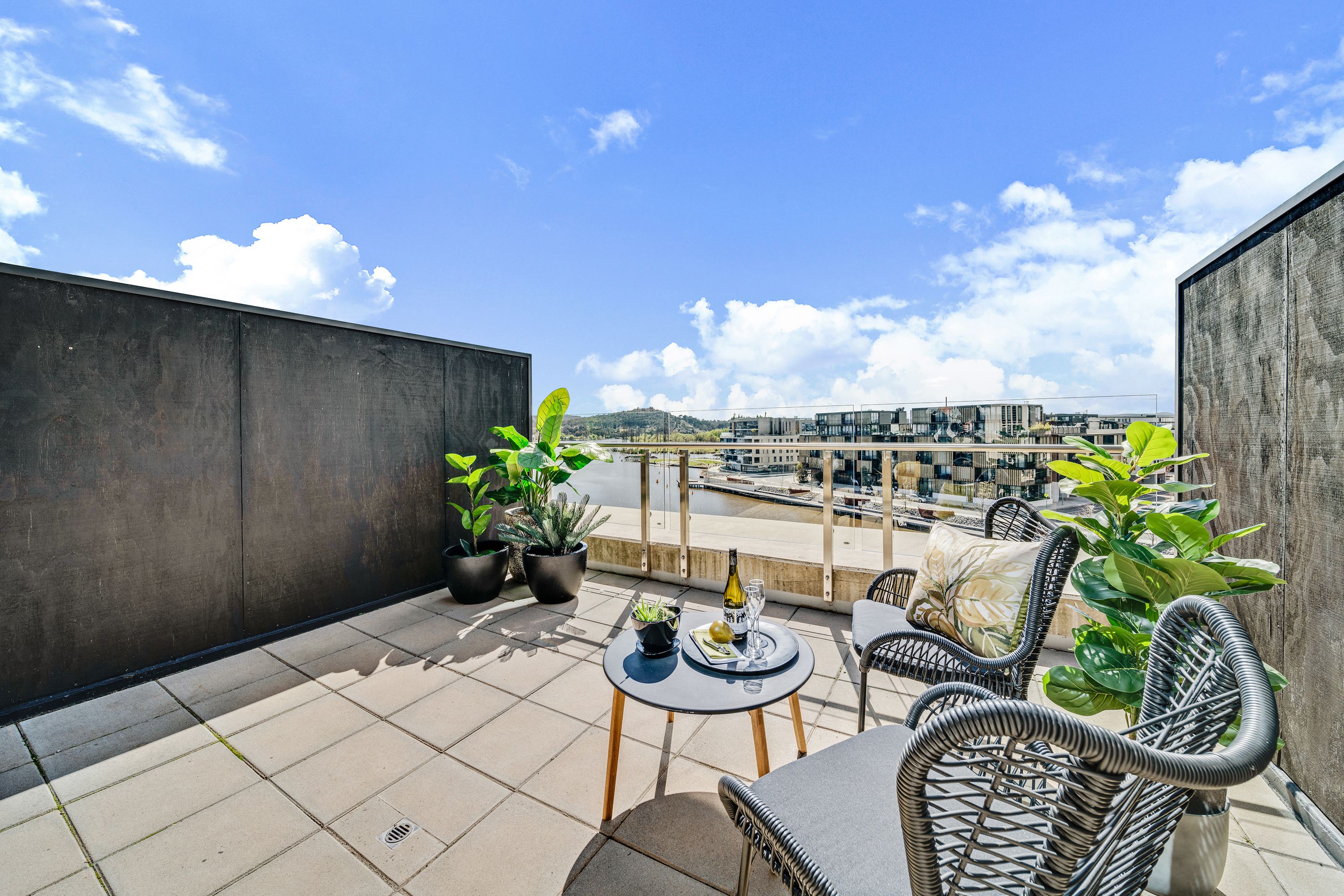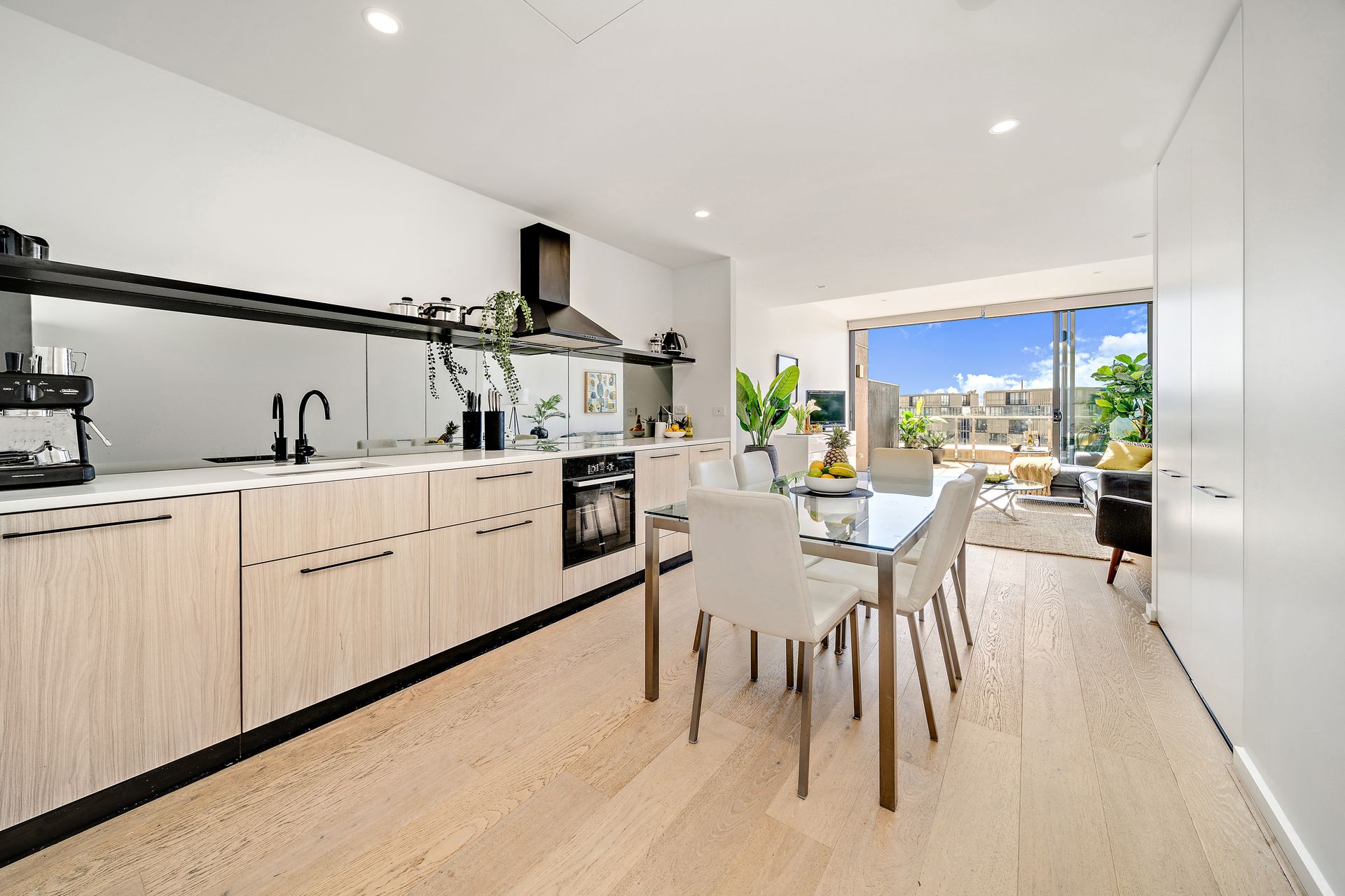 Instantly appealing and irresistible with its inclusions, this iconic penthouse style 'Sky Home' is one of just a handful available in Kingston Foreshore's Element complex. Affording breathtaking, never to be built out views, this two storey, two bedroom design on the top floor ensures ultimate privacy and refined liveability. From the entry, engineered Oak timber flooring carries you through the light filled living space to the generous alfresco. A sleek galley style kitchen with integrated dishwasher and fridge freezer is complemented with stone benches and Miele appliances. Full length sliding double glazed glass doors provide a wealth of natural light and guarantee the stunning view will always remain a prominent feature.