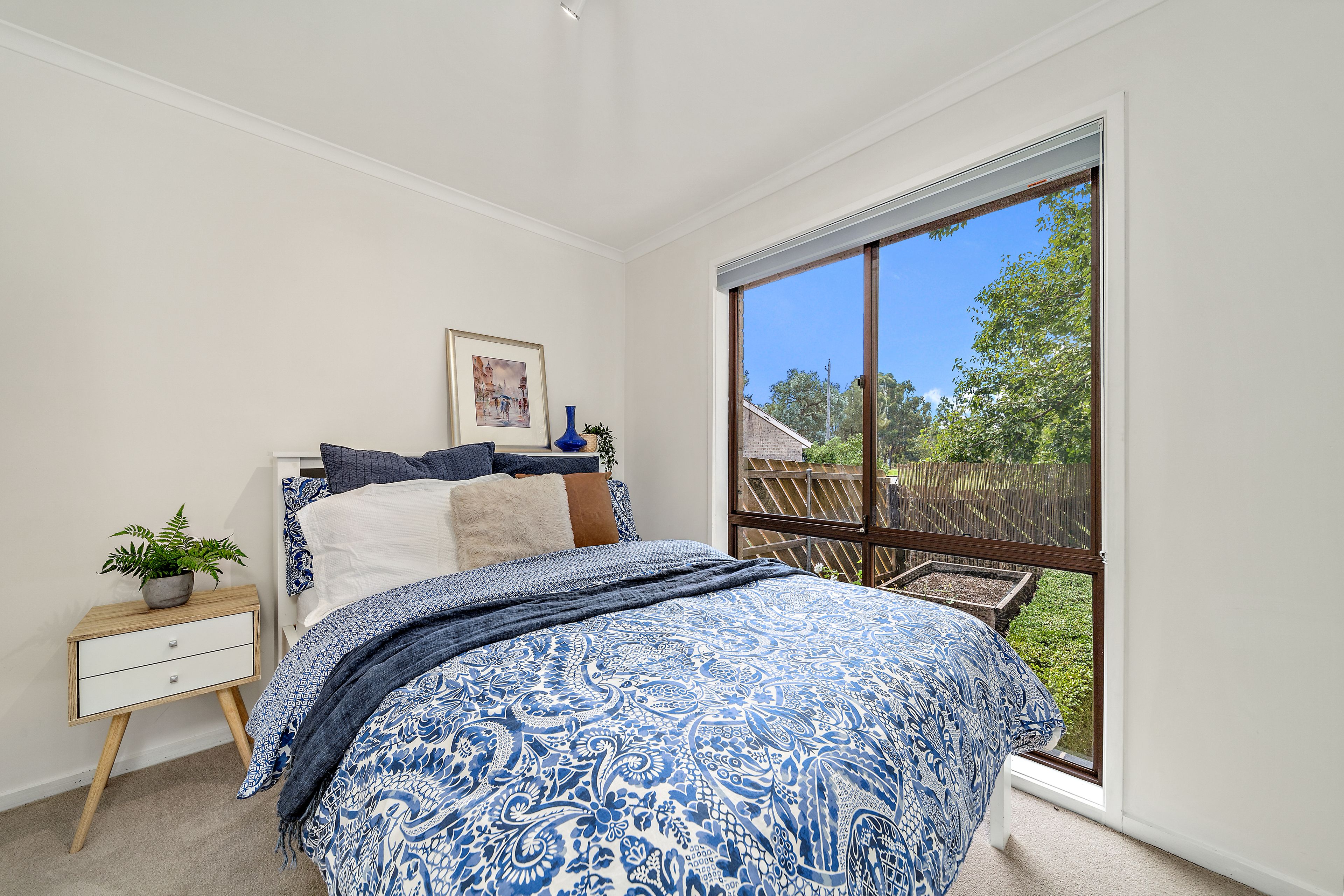 FEATURES * single-level detached two-bedroom brick home in the Cambridge Gardens complex * master bedroom with full wall of built-in wardrobes * double-size second bedroom with built-in wardrobe and views to the rear garden * open-plan dining and living area with sliding doors out to entertaining area * updated kitchen with stone benches, white splashback, black cupboards, stainless-steel electric cooktop, oven and dishwasher * bathroom with bath and separate shower * toilet is separate * laundry fixtures and scope for updating * reverse-cycle air conditioning and heating * New carpets and honeycomb blinds throughout * landscaped rear yard with timber deck, large paved terrace and a vegetable garden * single carport with lock-up storage plus additional car parking bay alongside