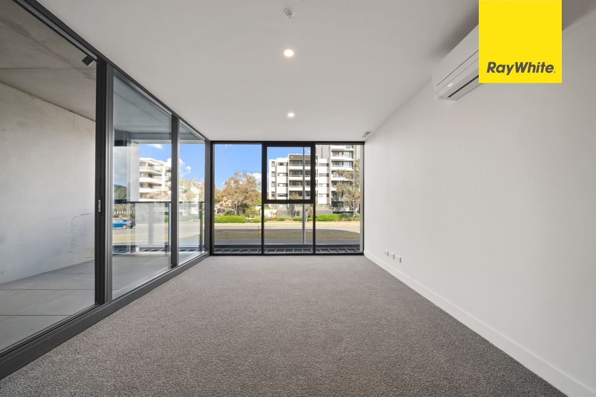 Chic 1-bedroom apartment Sun-drenched open-plan living, dining and kitchen Kitchen SMEG appliances including a dishwasher Reverse cycle heating and cooling to living space Built-in in robe to bedroom European Laundry Covered balcony Complex amenities include a pool, gym, fitness studio, cinema, communal library, dining areas and rooftop terrace Close proximity to Canberra Hospital, Canberra College, Westfield, Phillip Swimming & Ice Skating Centre