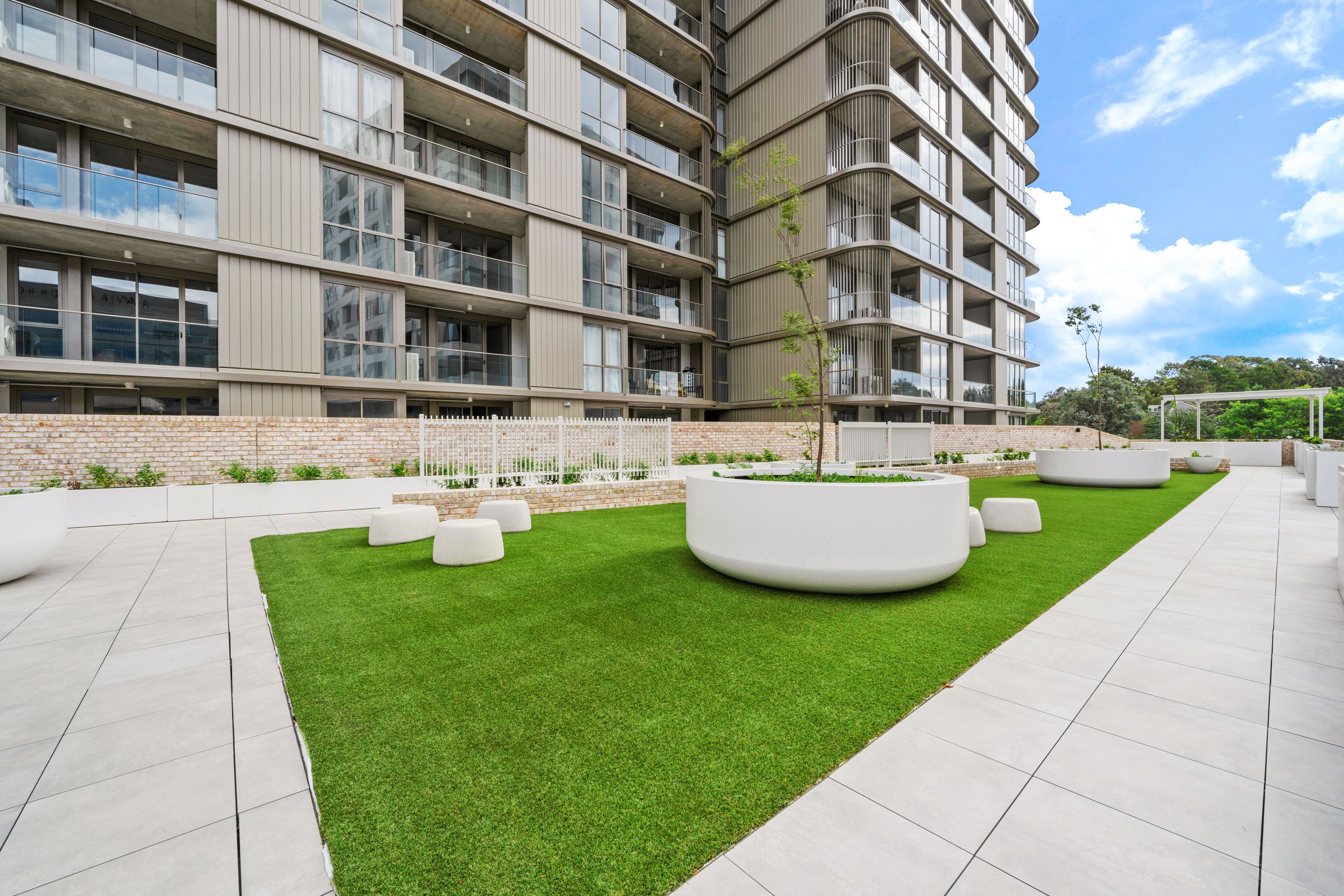 Residents enjoy access to impressive lifestyle amenities including a 25-metre lap pool, sun terrace, podium-level exercise lawn, rooftop Technogym and communal outdoor dining spaces.