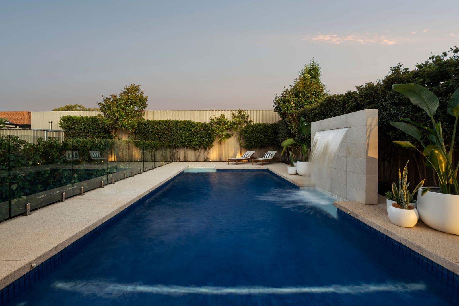 A tiled heated outdoor swimming pool provides the perfect setting for therapeutic relaxation, while a dedicated gym space allowed Boak to maintain his training regime in privacy. The outdoor kitchen and BBQ area create an ideal entertaining space, all within a spacious rear yard that offers room to breathe.