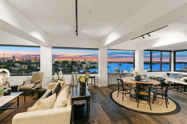 The 275sq m layout features an open design, soaring high ceilings and vast glass windows to capture views across the harbour and eastern suburbs. |