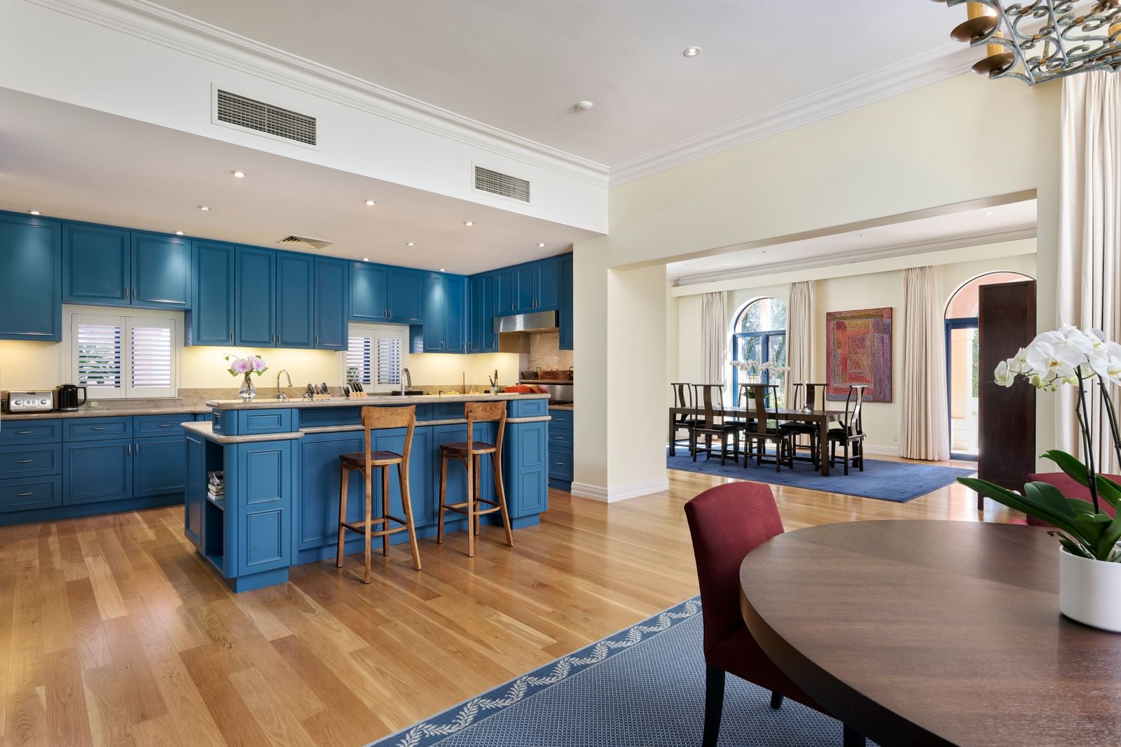The heart of the home is the chef’s kitchen, complete with a 1200mm Viking range, integrated Miele appliances, and a scullery equipped for catering large events.