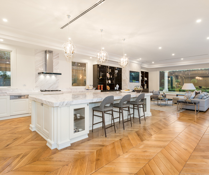 Here is a home designed to impress the unimpressionable, swathes of classic marble are softened by parquetry floors and each is counterbalanced by the high tech cinema and cutting edge cellaring.