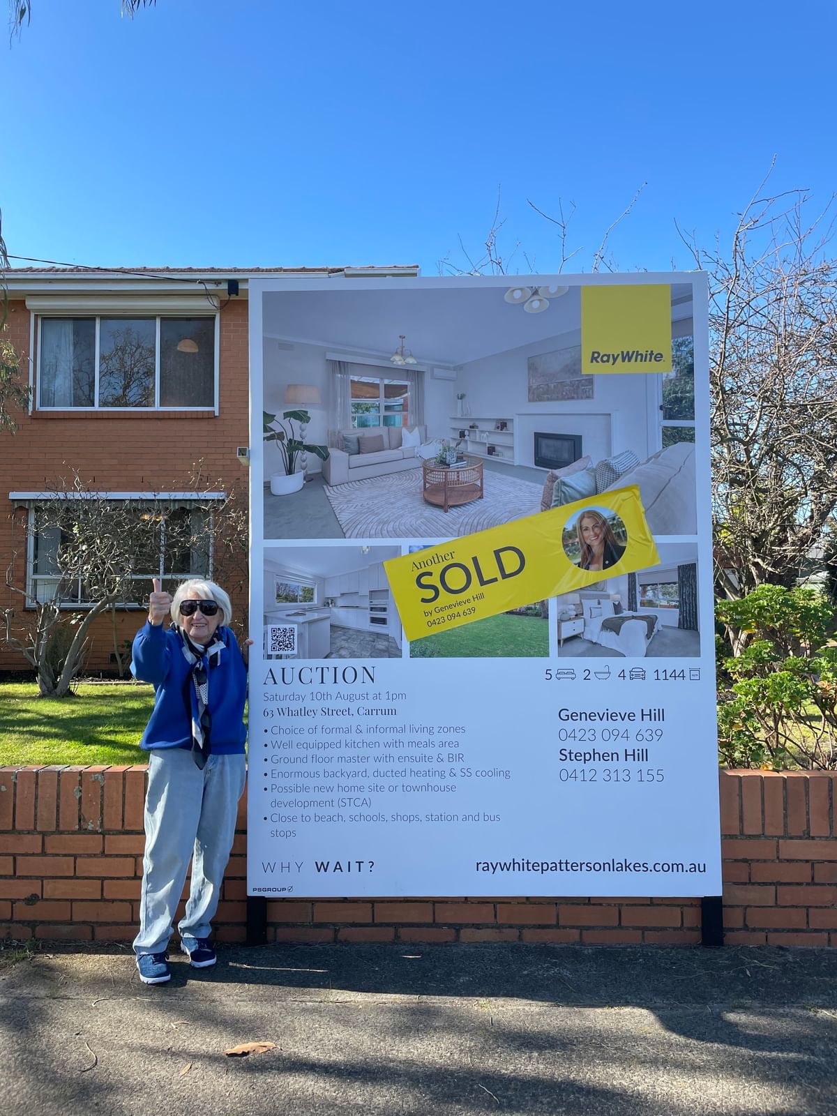 Ms Hill said the buyer was an investor from New South Wales who was on the phone, bidding via Facetime. “It was a huge auction with a big crowd, with lots of locals watching on. My seller is amazing, she is 90 years old (pictured above with Genevieve) and she has downsized and moved into a retirement village, so it was hard to leave but she is happy. It was her family home for nearly 28 years. The original home was a weatherboard built in 1950, then converted to a brick veneer in 1965.” In the last 3 weeks, Ms Hill had some 50 groups through to inspect the property.