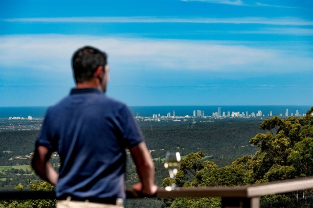 Eat breakfast on the nearby main deck, surrounded by wildlife, and overlooking the gorgeous gardens below which drop away to a patchwork of Gold Coast greens and blues.