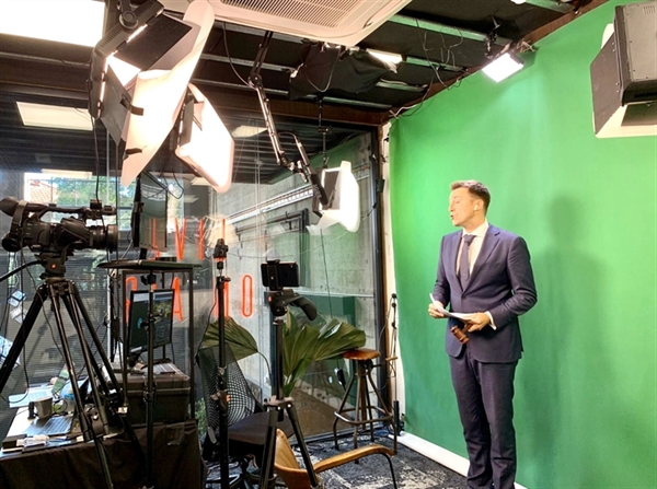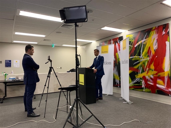 Ray White auctioneer James Kerley had set up his purpose built virtual studio in Lavender Bay to conduct his online auctions.
