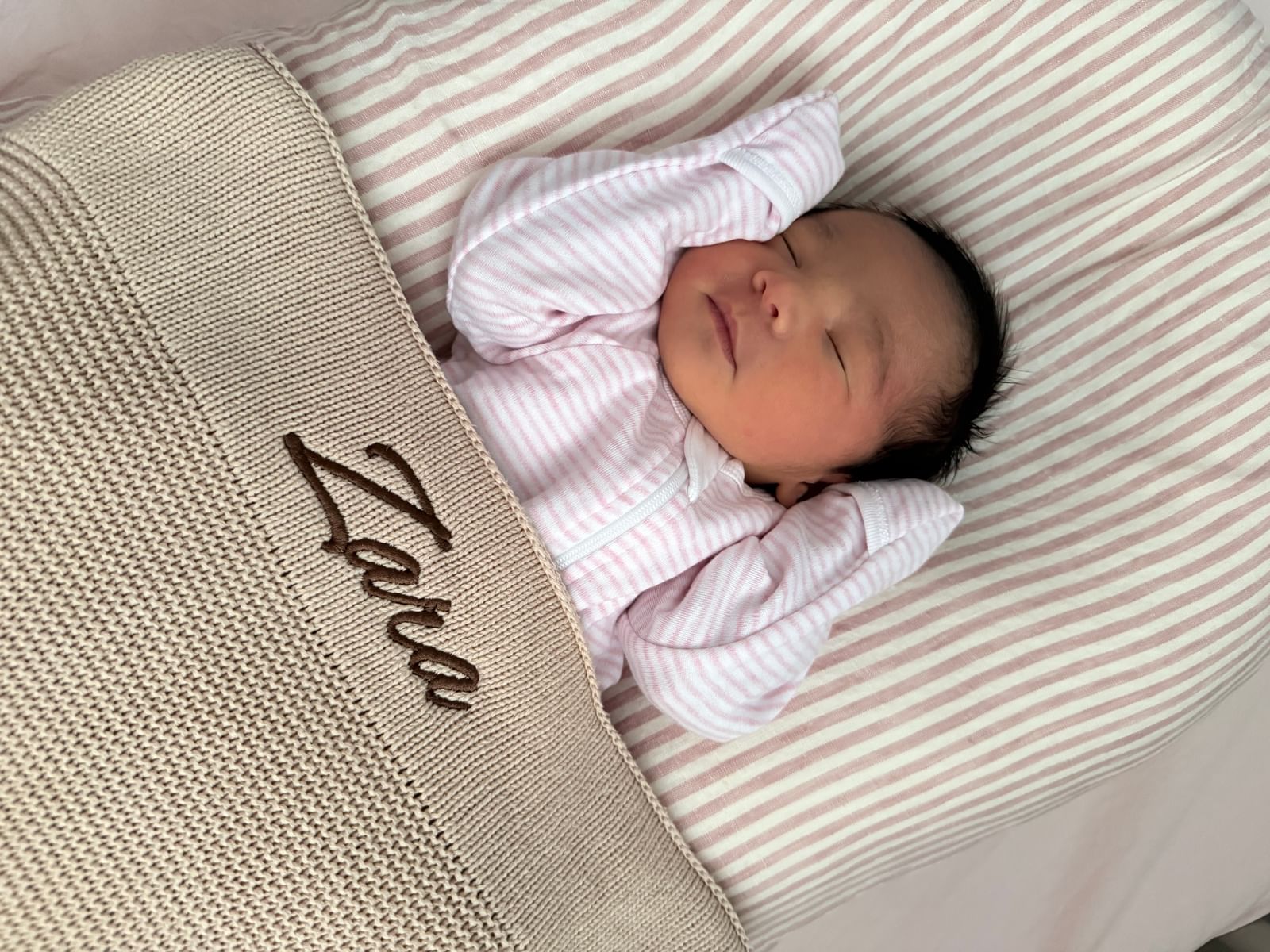 Weighing 3.5kg, little Zara made her grand entrance at 11.28pm on Sunday, 8 February at Mater Mothers’ Private Hospital in South Brisbane, arriving just one day after her due date.