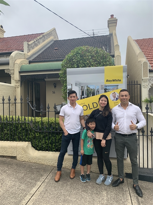 From there, Mr Keenan went to 14 Temple St, Stanmore where the Directors of Ray White Surry Hills, Ercan Ersan and Shaun Stoker stopped traffic in the street with their massive crowd of more than 100 watching on to see 14 registered bidders fight it out.