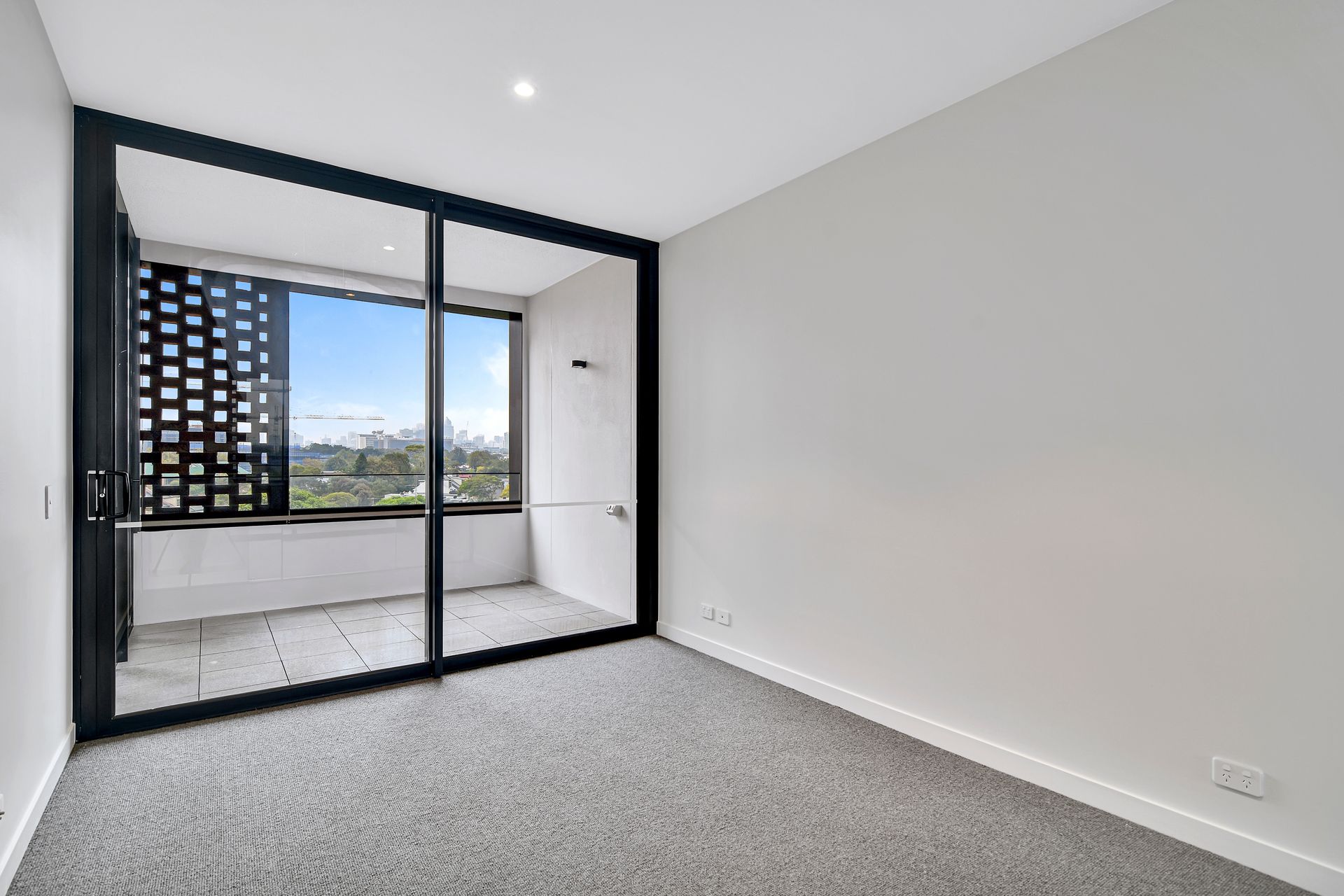 - Large bedroom with balcony access, floor to ceiling built-in robes