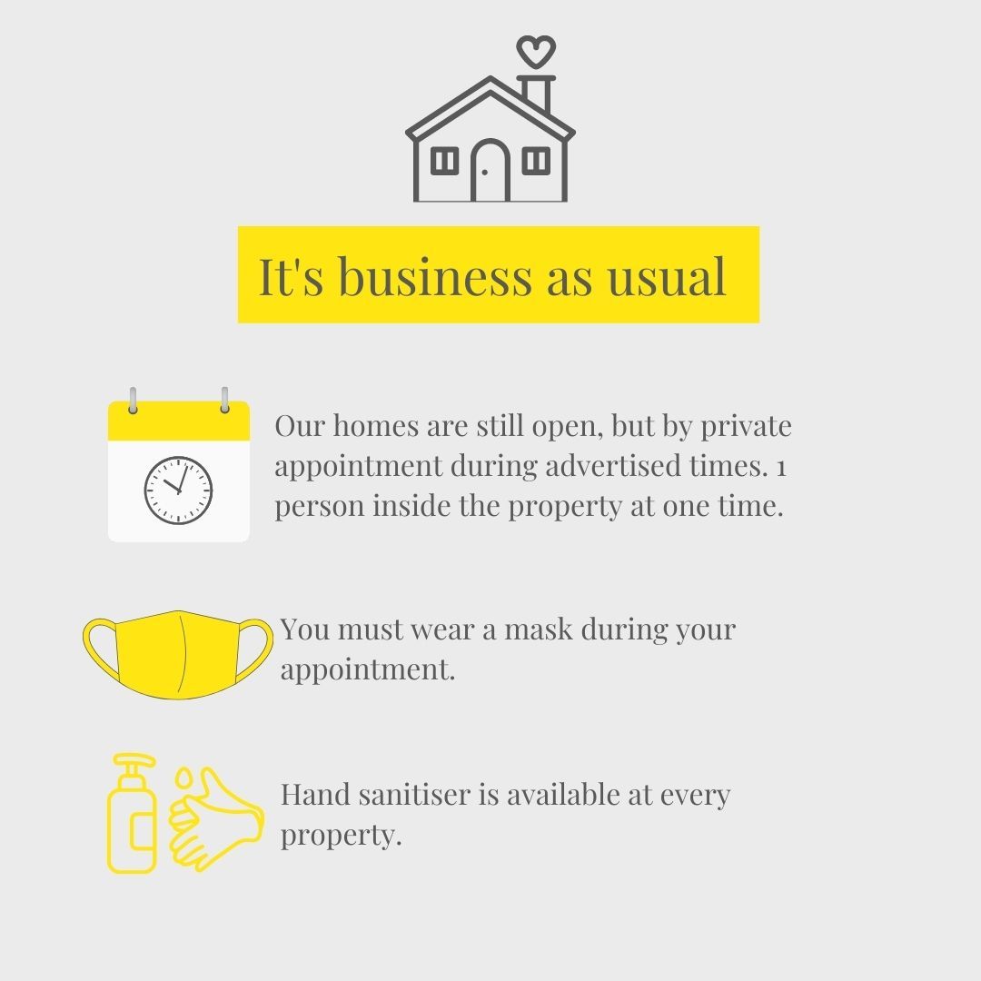 Our homes are still open, but by private appointment only. Please contact the agent to arrange your private inspection.
