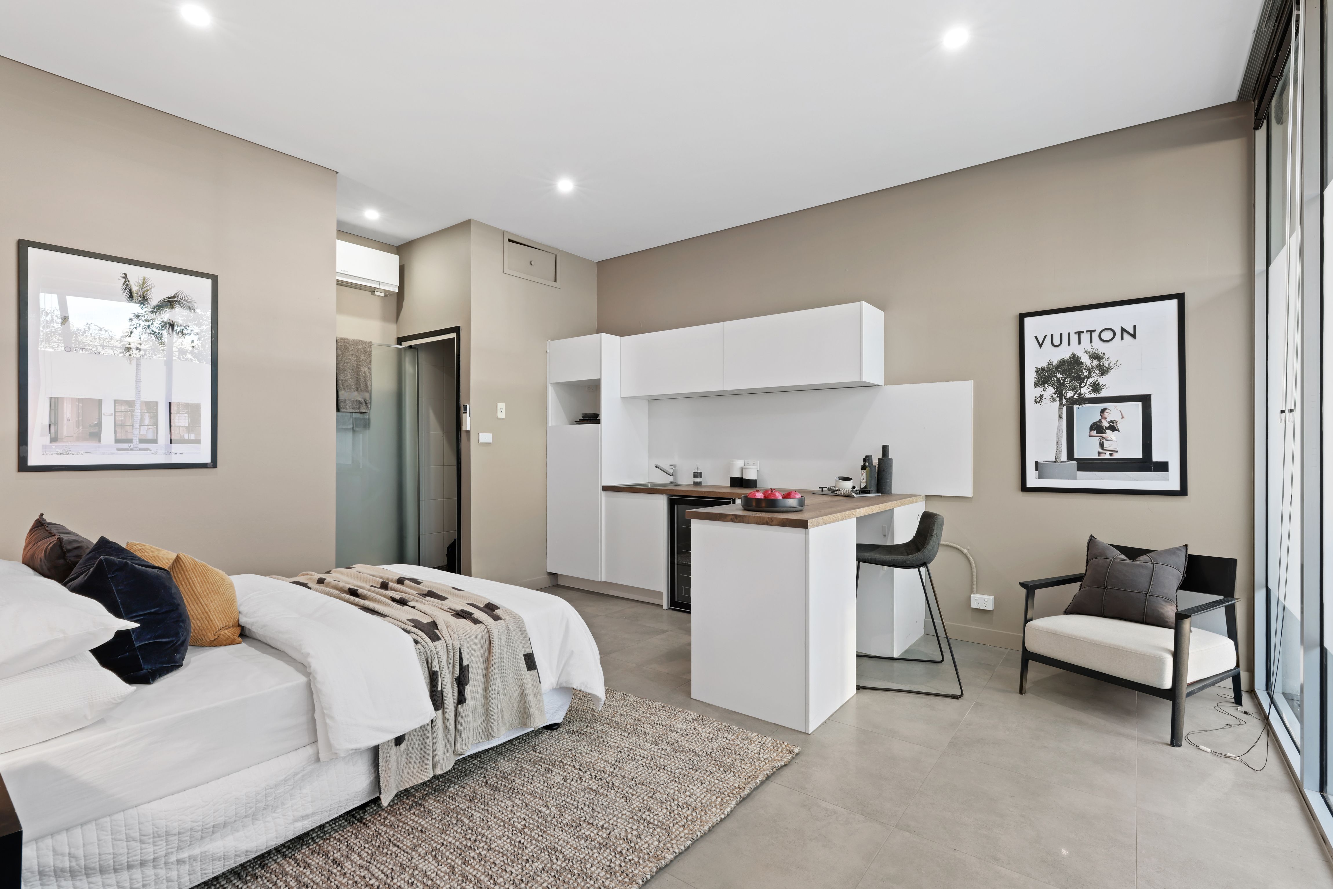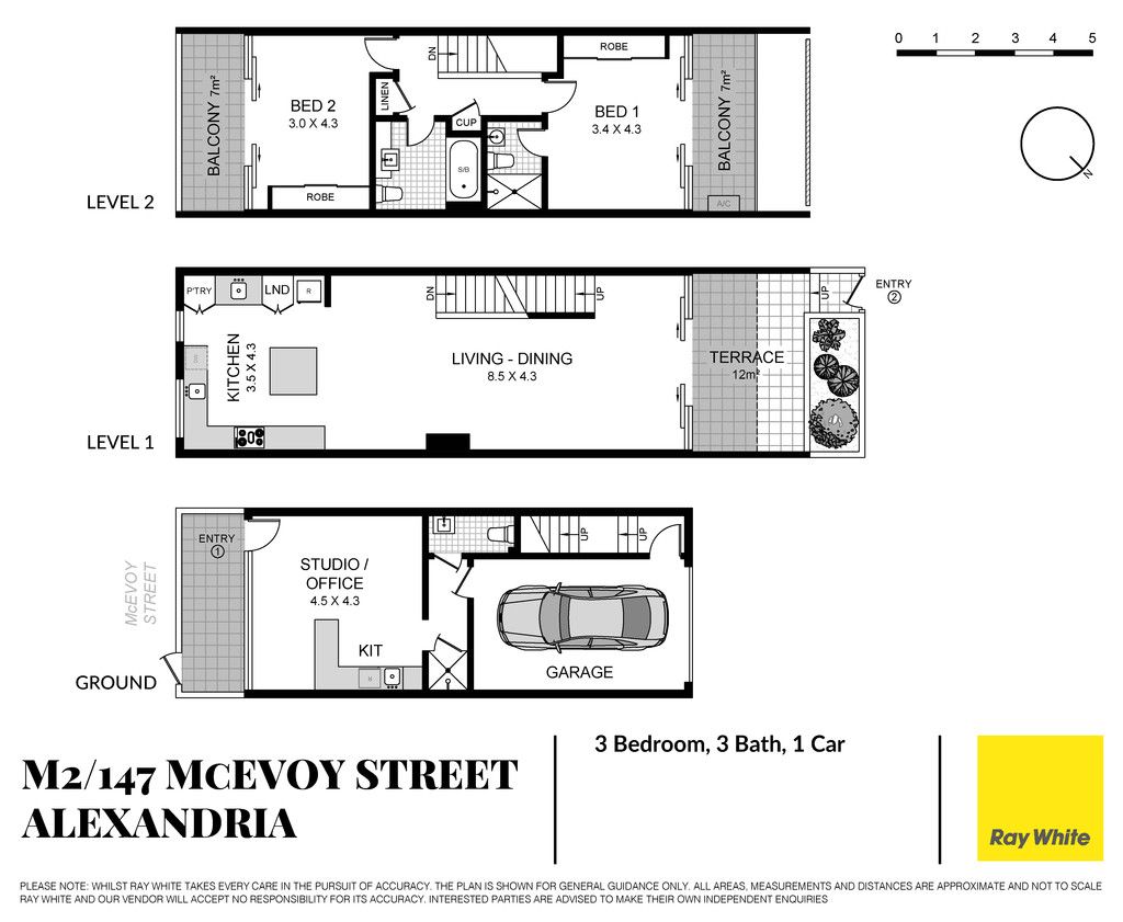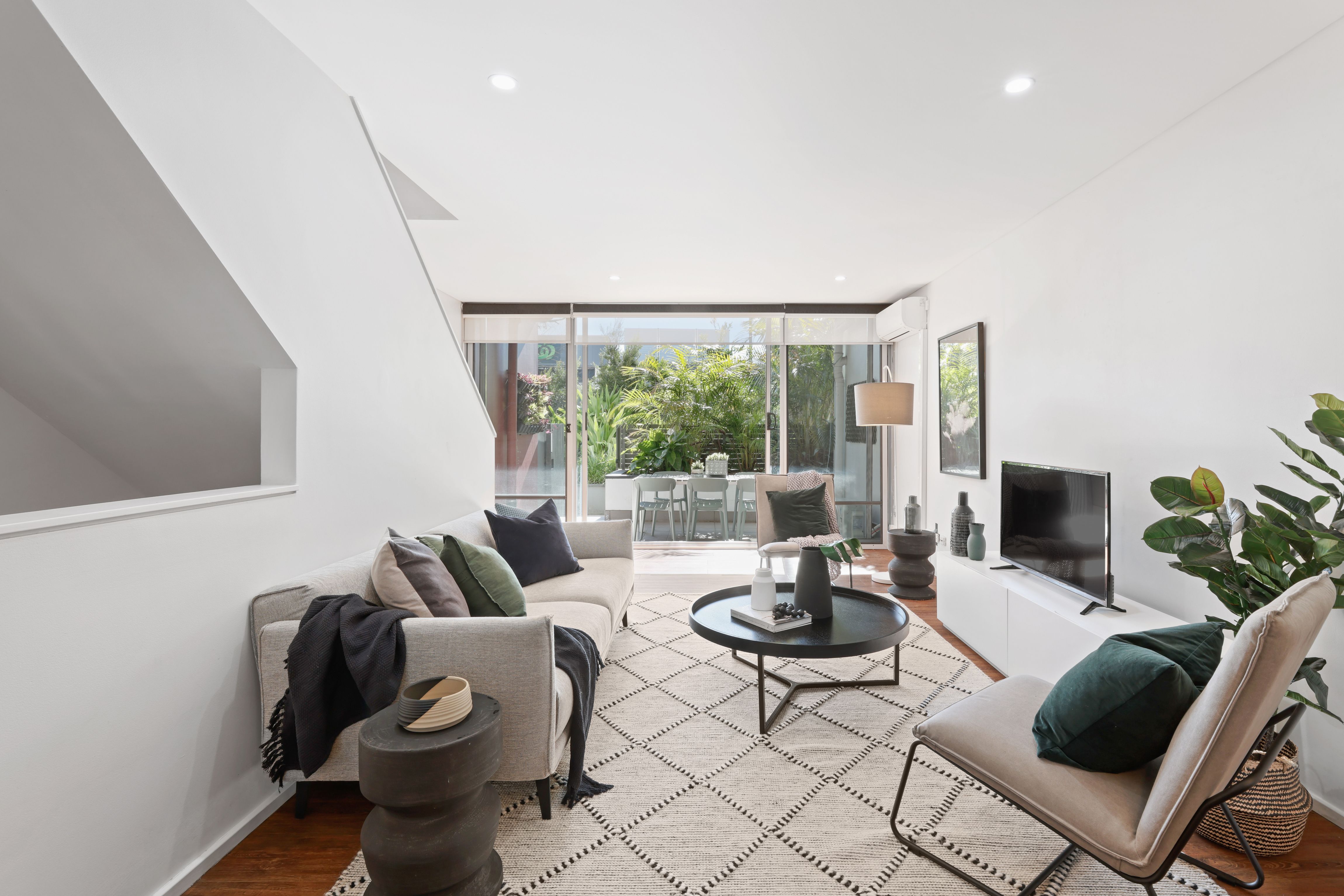 - Terrace-style townhome with a separate self-contained studio - Private street frontage/entry, Mixed Use zoning, ideal live/work - Custom renovated interiors, new near floorboards - Designer island kitchen with concrete-look Caesarstone benchtops - 5 burner gas cooktop, Asko dishwasher, dual sinks, ample storage - Spacious open living and dining, reverse air, statement lighting - Sunny entertainer's courtyard with direct access to shared gardens - 2 large bedrooms with built-ins with deep balconies, main ensuite - Main bathroom with tropical wall tiles, bath, matte black tapware - Stylish ensuite with herringbone floor tiles and a custom vanity - Studio or home office with dual entry, kitchenette and bathroom - Convenient internal access to a lock-up garage, video intercom - Fountain Street's retail and dining precinct just around the corner - Stroll to cafes, Woolworths and eateries, 500m to Alexandria Park - Rates: Water $152.16pq, Council $305.17pq, Strata $1417.30pq (All approx.)