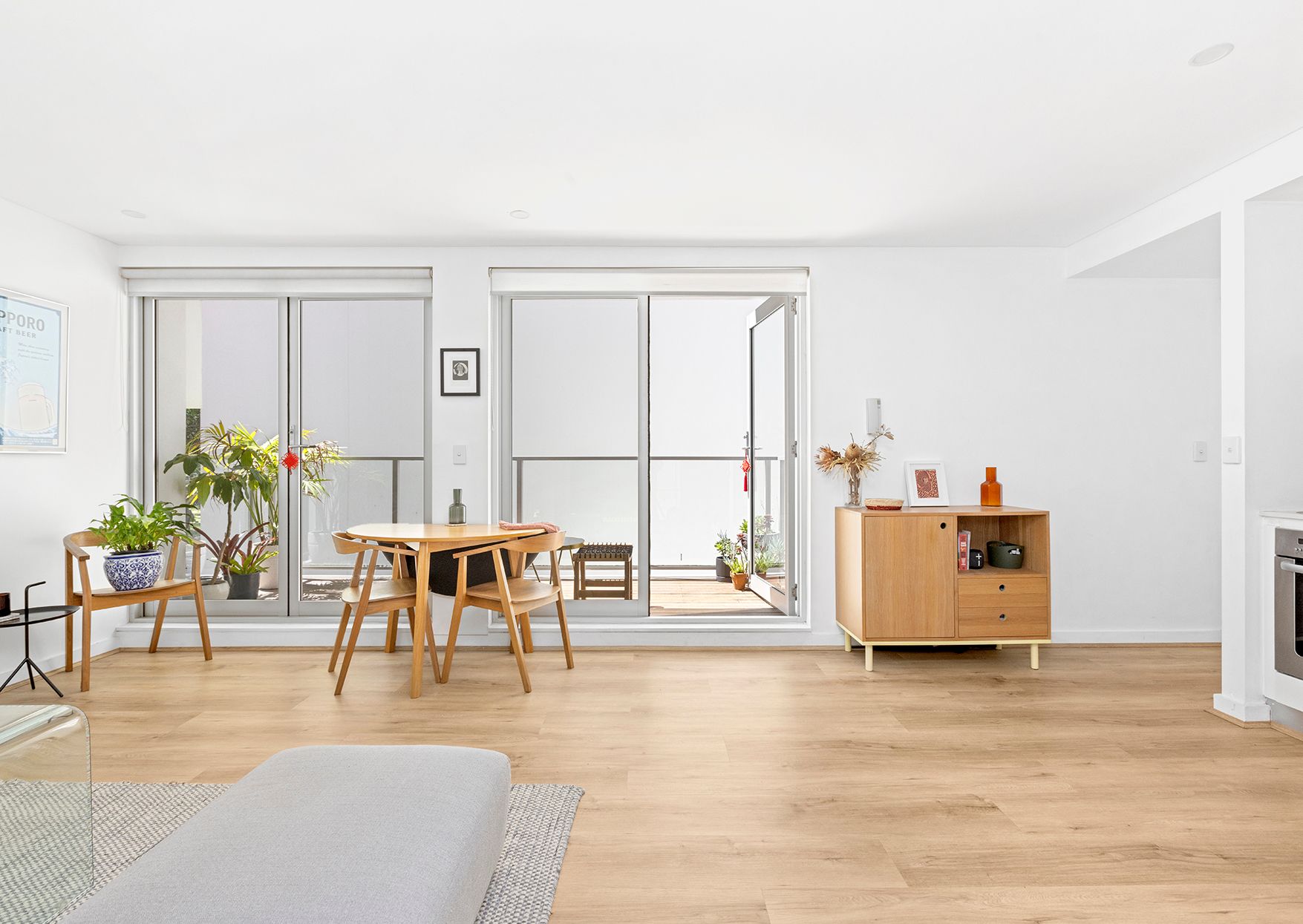 • Open plan living/ dining area is completely private • Well-proportioned bedroom with built-in wardrobe • Gas kitchen with dishwasher and ample storage • Sun-drenched deck accessed through double glass doors • Polished floorboards throughout, internal laundry • Full size bathroom with separate bath and shower • Security building with multiple visitor parking spaces • Moments to city buses, under 15min walk to Green Square • Walk to The Grounds, The Cannery and many other foodie destinations