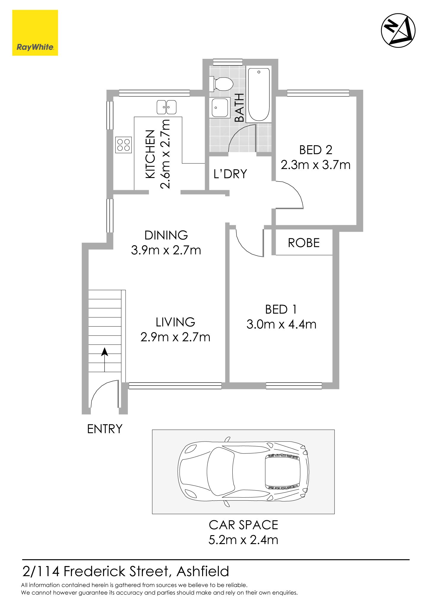 with bathtub, internal laundry space and an off street car space.