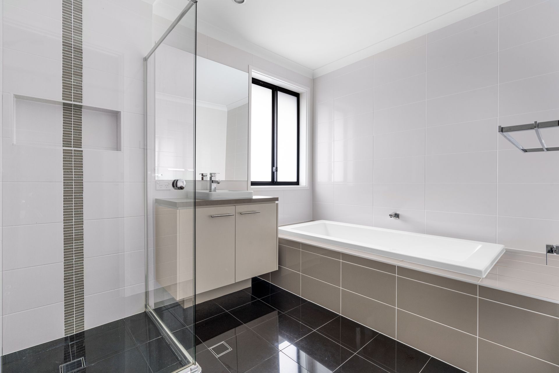 The upper-level layout includes five bedrooms, including a spacious major suite specially equipped with a private bathroom and a sweeping walk-in robe, three bedrooms with walk-in robes, as well as a versatile room that can double as a fifth bedroom or an enclosed rumpus room. The upper level is serviced by a full bathroom with gleaming tile finishes and elegant fixtures.