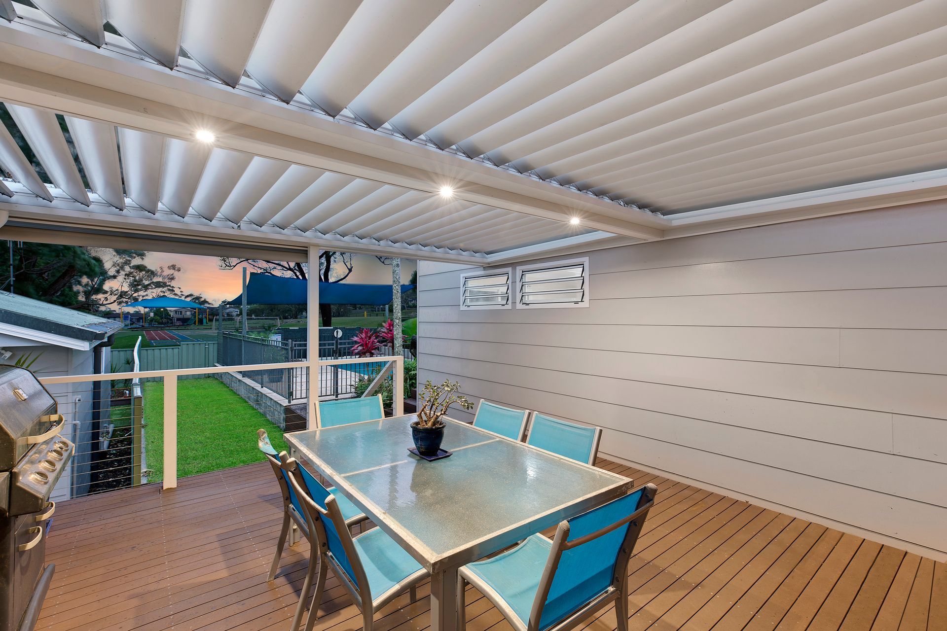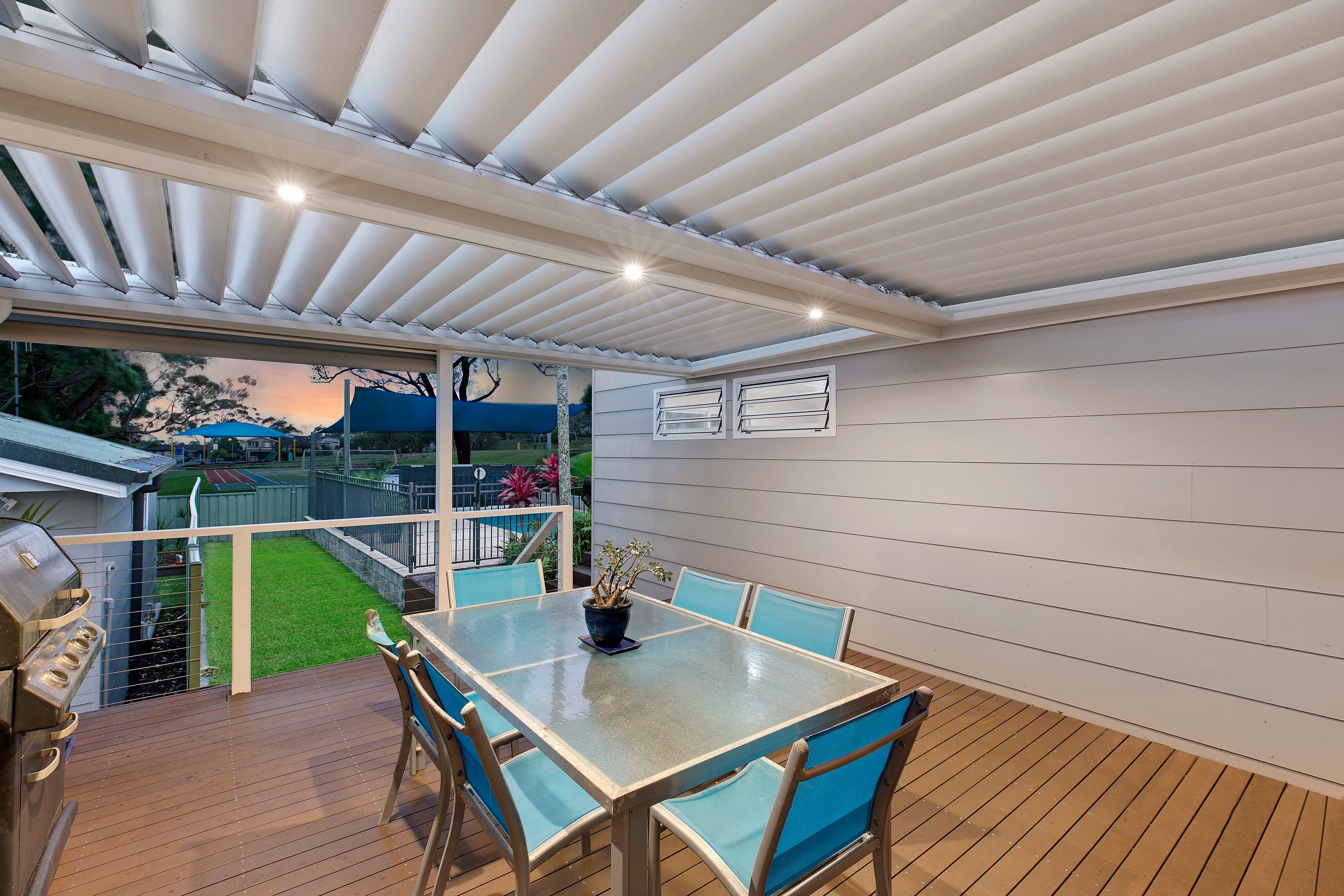 - Private outdoor entertaining with covered Vergola with remote and all weather sensors