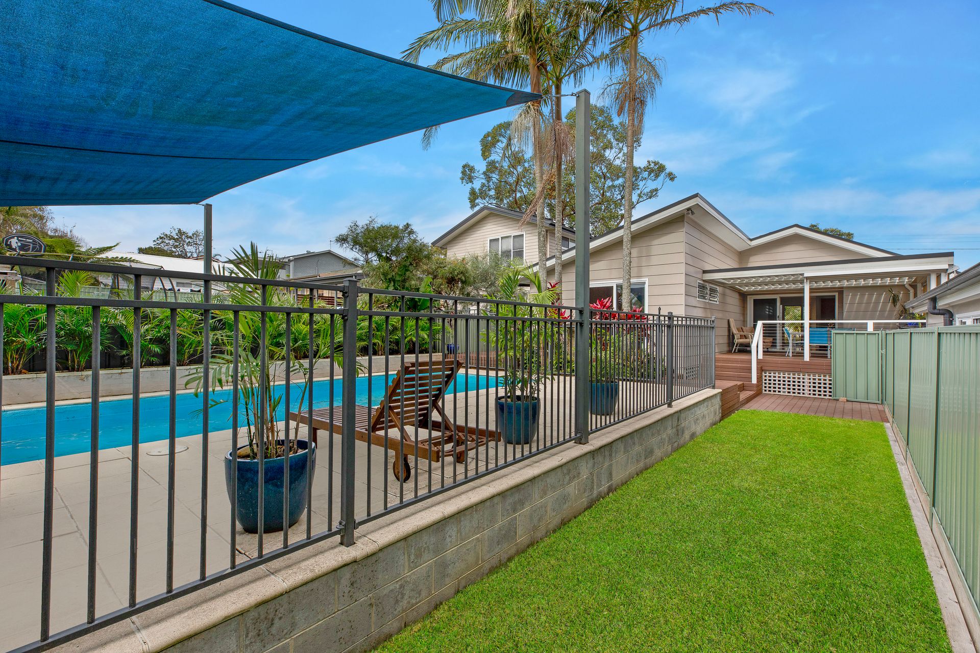 - Sunny north facing aspect, backyard with inground pool, and tropical landscaped gardens