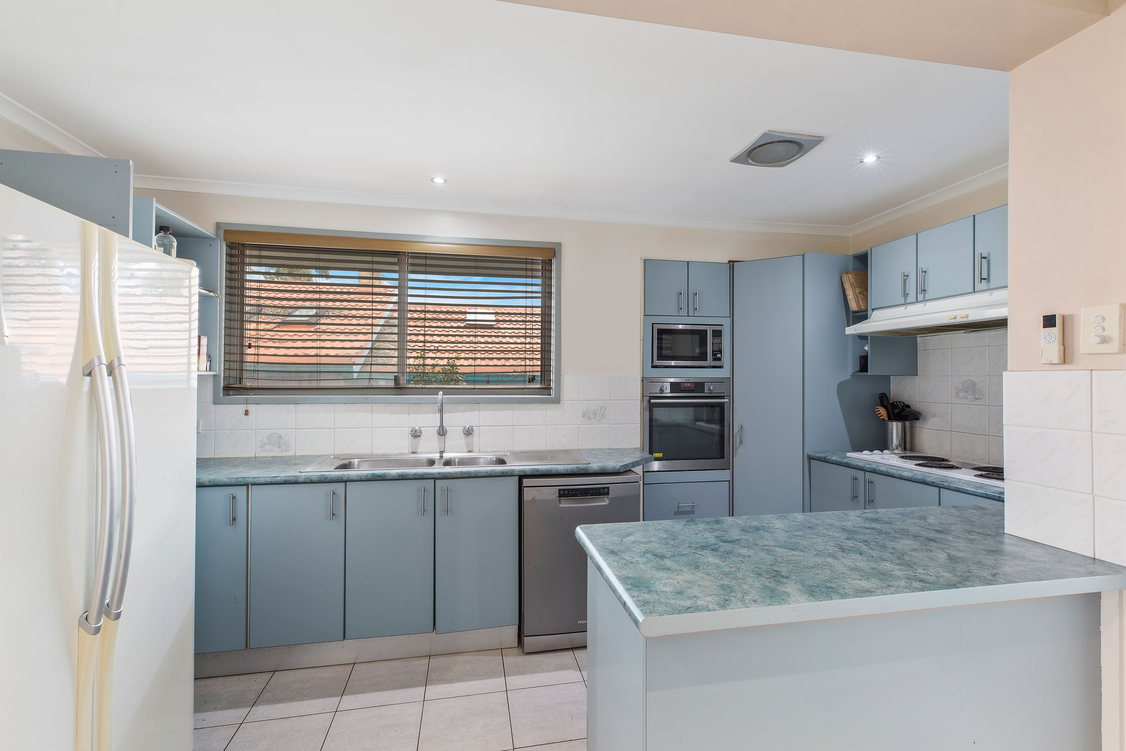 - Neat kitchen with electric cooking appliances, dishwasher and ample storage