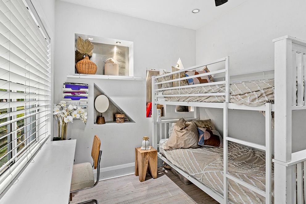 Sliding screens, a loft in one bedroom, a completely adaptable garage all add to the incredible versatility of its spaces. Each bedroom offers something different. Australian Silky Oak cabinetry in the living areas is a dazzling character touch. The rumpus/media/games room has a separate entrance, making it an adaptable space that could just as easily be a home office, study or studio.