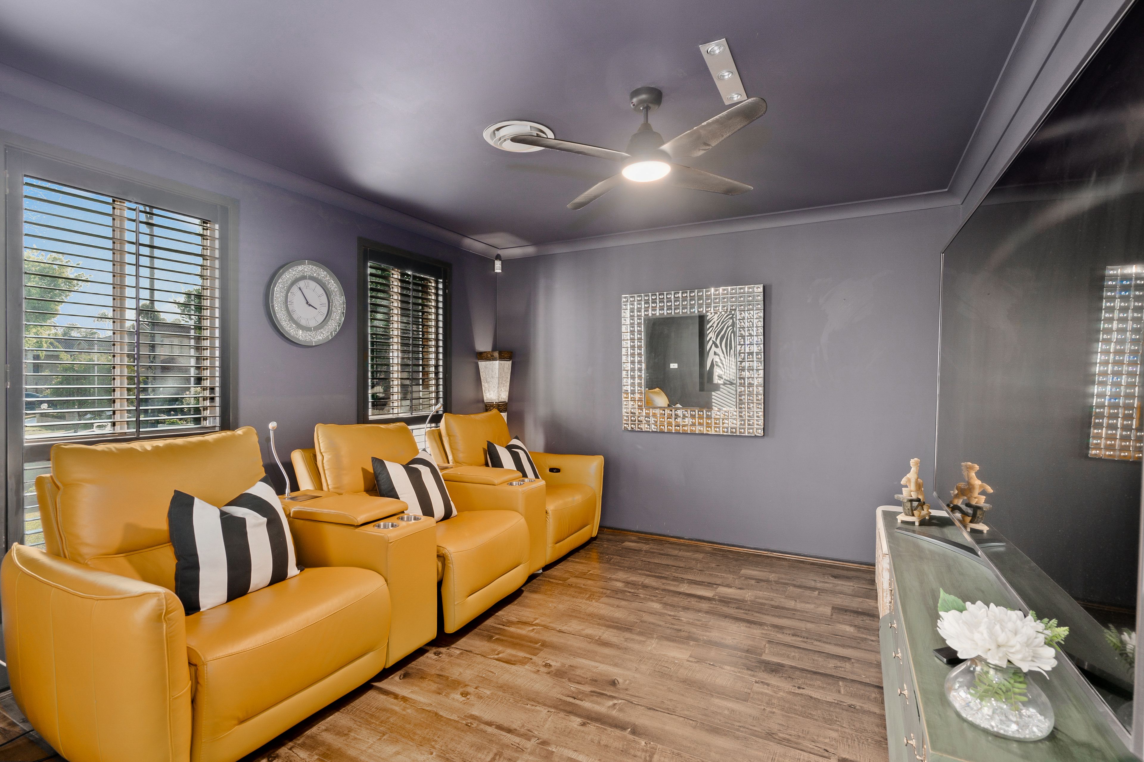 Venturing upstairs, you'll encounter a generously proportioned rumpus room & a master bedroom that stands as a luxurious retreat, boasting a ceiling fan, an aesthetically pleasing feature wall, an expansive walk-in robe & a private his & her ensuite. The upper level is also accompanied by three bedrooms, each equipped with built-in robes and ceiling fans for your utmost comfort, the main bathroom comes complete with a built-in bathtub, discreet storage concealed behind mirrored panels, ensuring your daily needs are met with ease.