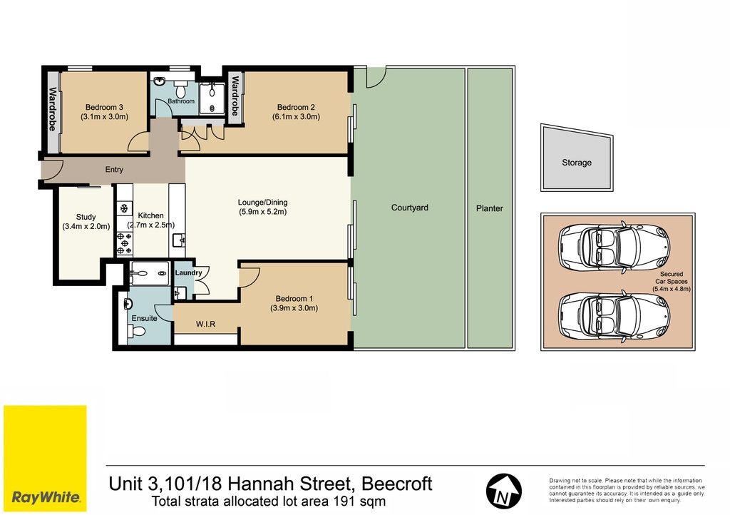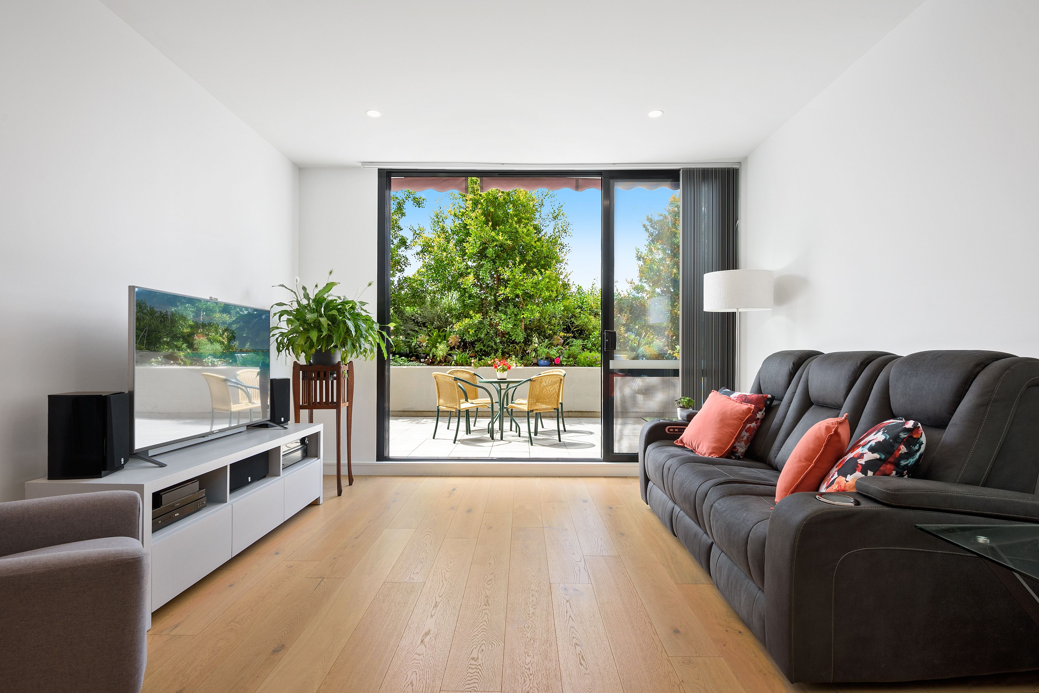 In A Nutshell: - 3 bedroom, 2 bathroom, 2 car accommodation plus study - Master with walk in robe, en-suite, wall mounted TV and access to your alfresco area - Stone island bench kitchen with Miele 5 burner gas cook-top plus integrated dishwasher - Spacious and sun filled courtyard with garden and automatic shades - 2.65m ceilings to allow for that extra feeling of space and light - Ducted and individual air conditioning controls per room, fans throughout, LED lights - Pet friendly complex - Video intercom access - Secure double car park with swipe card entrance. Storage cage