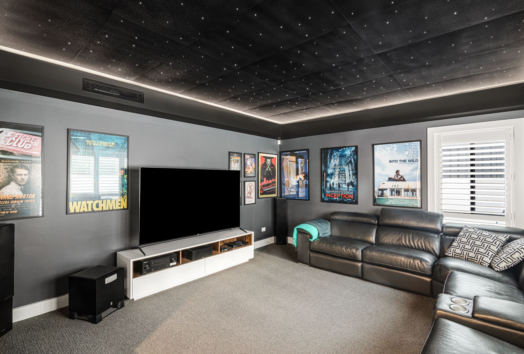 Features: • 707.3sqm landholding in private and secure enclave • Five glamorous bedrooms with four situated on the top floor, all with built-in or walk-in wardrobes and ducted air conditioning • Magazine-styled master bedroom with excellent cityscape views, organized walk-through wardrobe with full length hanging space for functionality, floor to ceiling tiled ensuite • Fitted with his and hers floating vanity and frameless shower screen with double rain heads • Expansive downstairs bathroom accentuated with floating vanity and full mirrored wall, topped with ceiling mounted rain head • Delectable kitchen with functional layout, fixed with engineered stone bench tops, 900mm BOSCH 6 burner gas cooktop & oven combined, Miele convection microwave/baker and oversized walk in pantry • Relaxing movie theatre room styled with starlight ceiling, adjacent to casual lounge warmed with 1300mm ESCEA Gas fireplace and additional formal lounge complemented by faux exposed brick wall - complimented by artistic mini-bar with wine rack and multicolour lighting • Sparkling in-ground swimming pool enhanced by cascading waterfall centerpiece with blue iridescent mosaic tile feature all enveloped by frameless glass balustrade • Stunning covered outdoor dining patio finished with travertine tiling, extended glass sliding doors allows seamless access to inside amenities, skirted with evergreen curtain hedge for optimal privacy • Double ceiling height to triple car garage with paint finished floors and BEAM Serenity Plus wall mounted vacuum unit • Additional features: push-button light switches, natural gas to BBQ, Hik-Connect app controlled CCTV system, back to base alarm system + security patrol, DAIKIN 8-zoned ducted AC system w/ app control, Panasonic intercom system and CRESTRON home-control system with custom colour bar lights, music speakers & mood settings throughout.