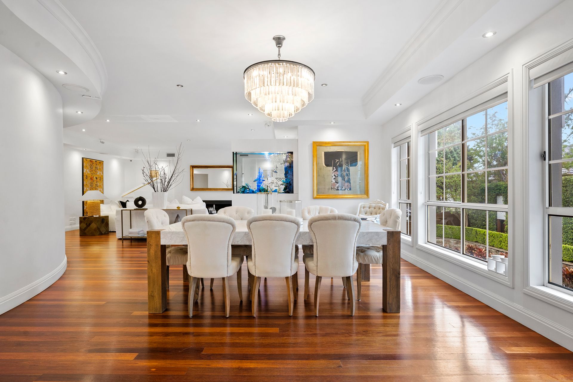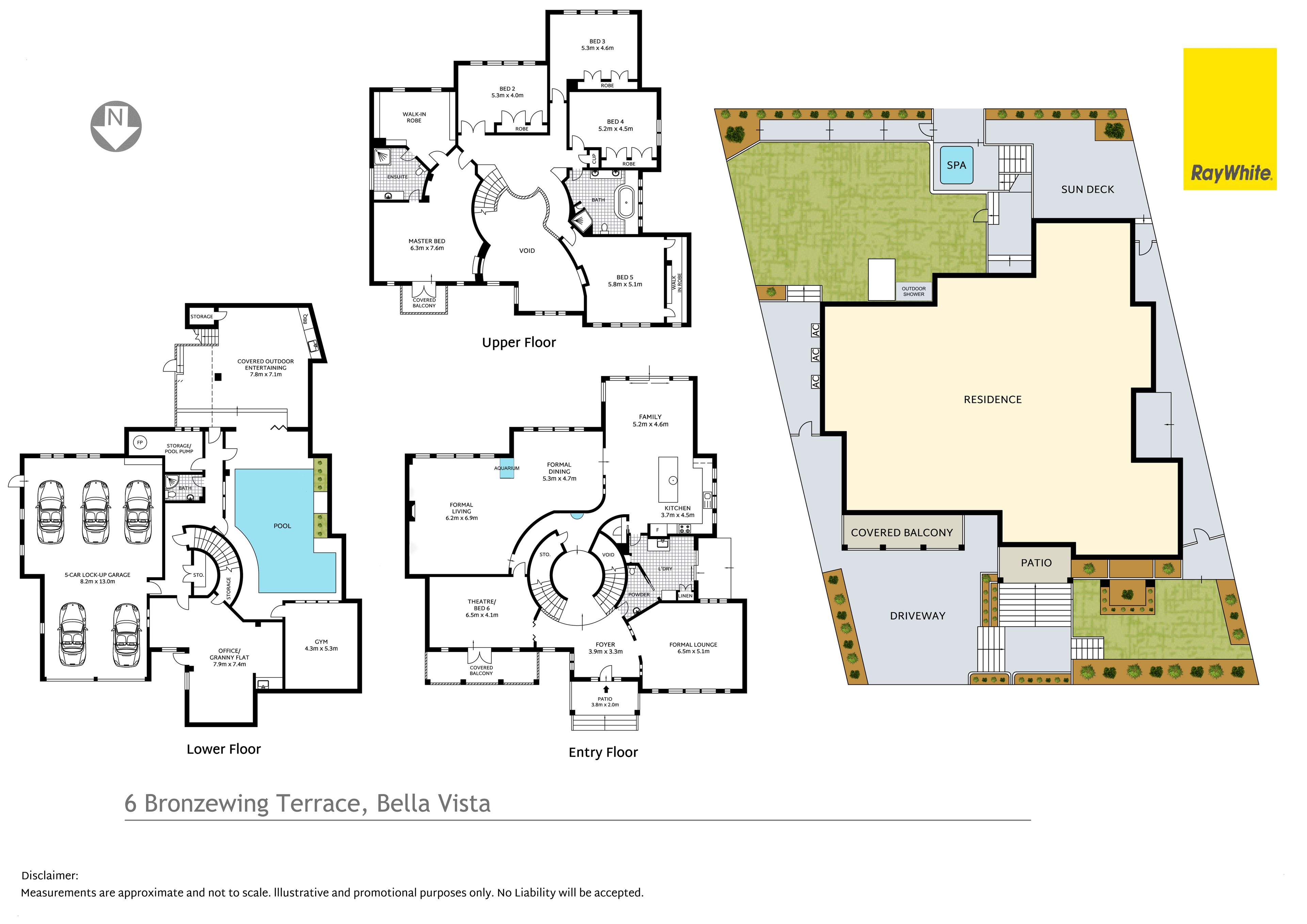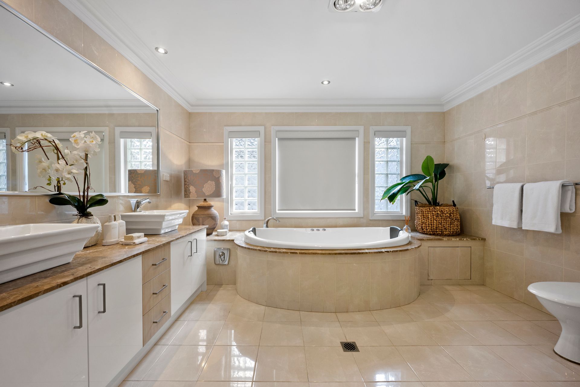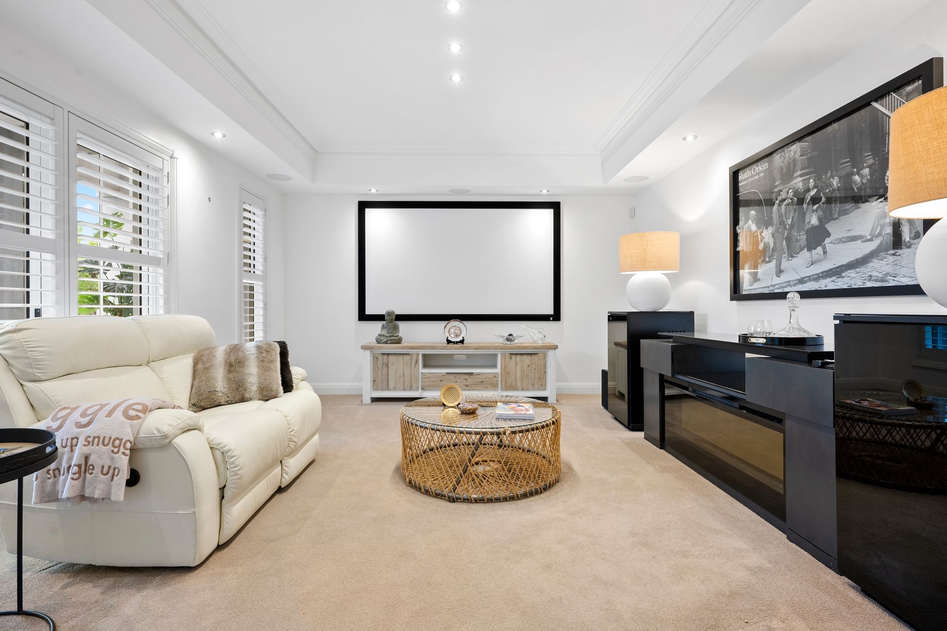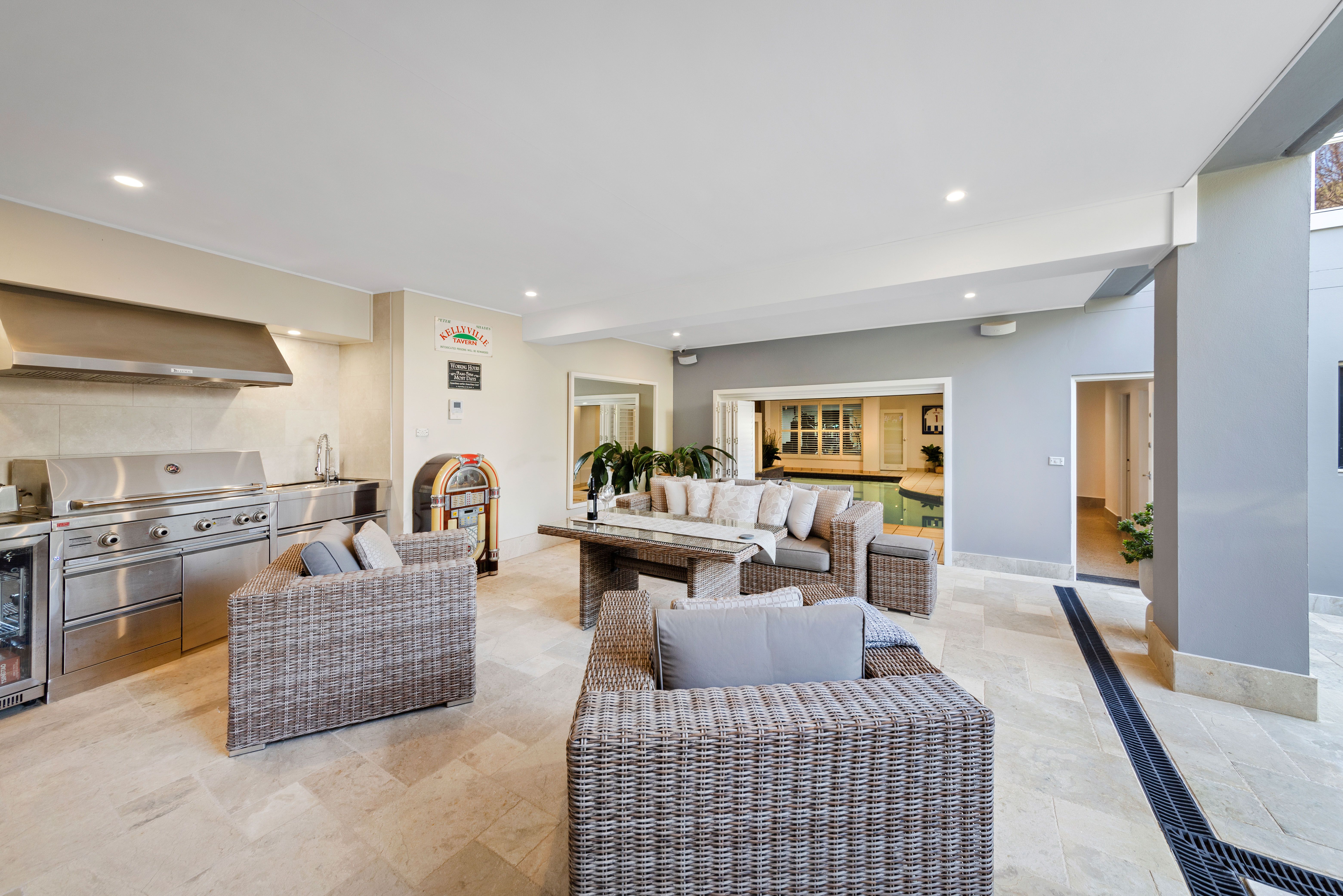 - 6 bedrooms, 4 bathrooms, 5-car garage. - North-facing, high-side position in a quiet, tree-lined street - Grand sense of arrival - Solid concrete construction to entire lower level - Multiple living zones for privacy and retreat - Media room with Bose surround sound - Bose sound system throughout the middle level - Commercial-grade kitchen with walk-in pantry - Downstairs level suitable as granny flat or home office with separate entry - Heated indoor swimming pool plus large indoor gym with reformer Pilates bed - Private yard, a rare offering in Bella Vista Waters - Five-car garage with internal car-washing drains and lift-ready provisions - Ducted air conditioning, gas fireplace, marble bathrooms - 360-degree security camera system