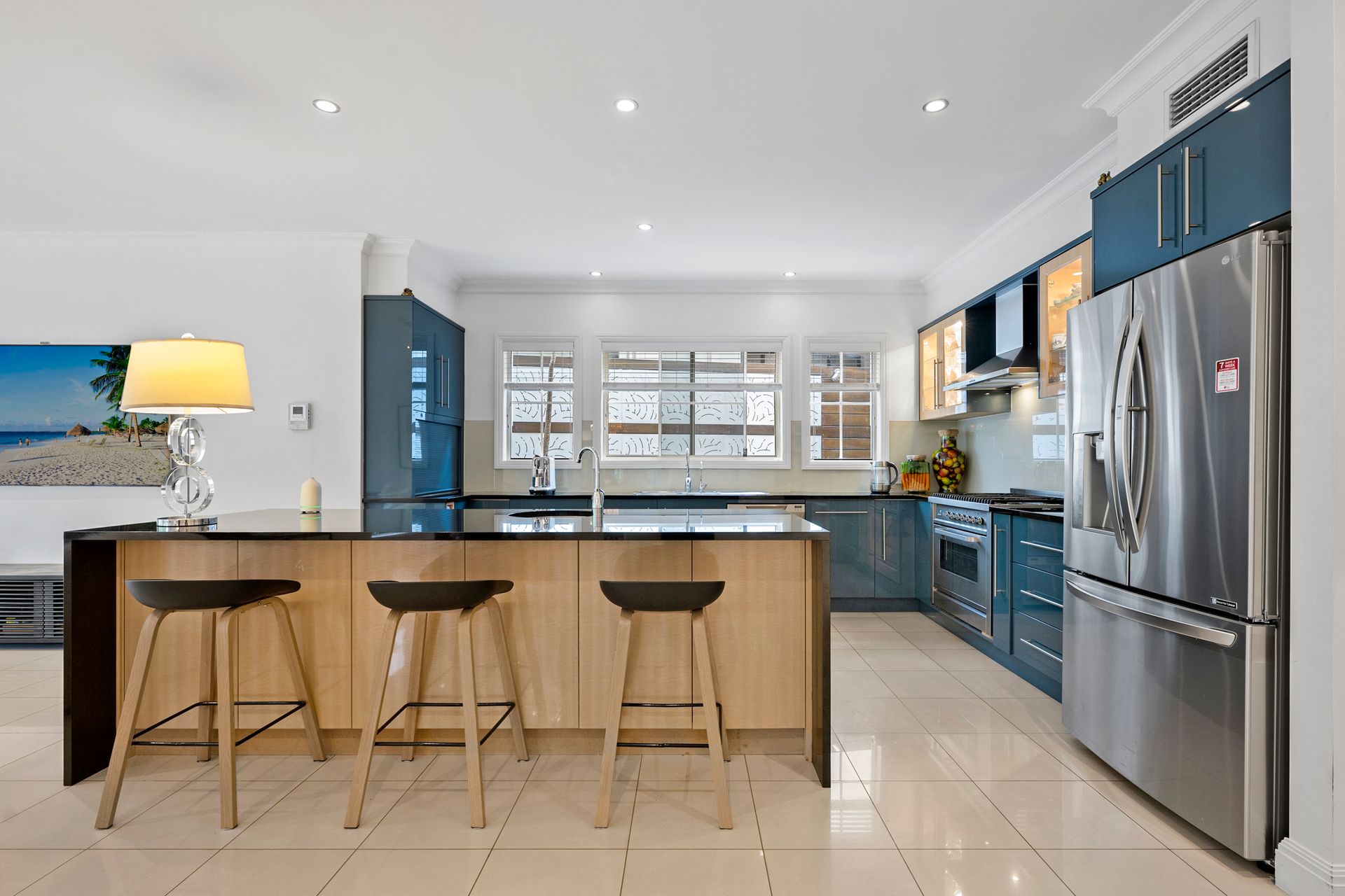 The kitchen is designed for serious entertainers, featuring a commercial-grade cooktop, premium appliances, extensive storage, and a walk-in pantry, seamlessly connecting to indoor and outdoor living areas.