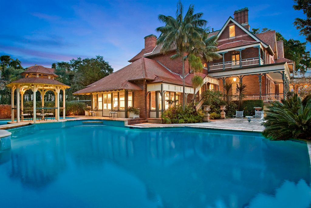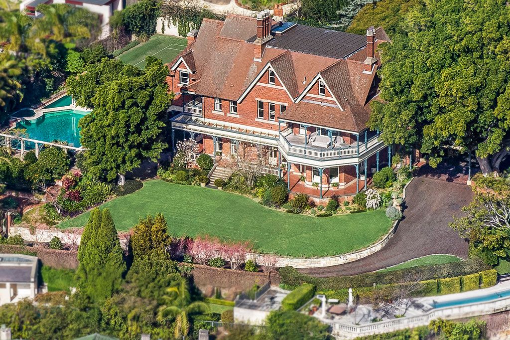 - 8 bedrooms, 8 bathrooms, 6 car garage - Grand interiors with elegant details - Tennis court and resort swimming pool - Private level lawns and wide verandahs - Gracious formal and informal areas - Original ballroom with soaring ceilings - North facing with superb harbour views