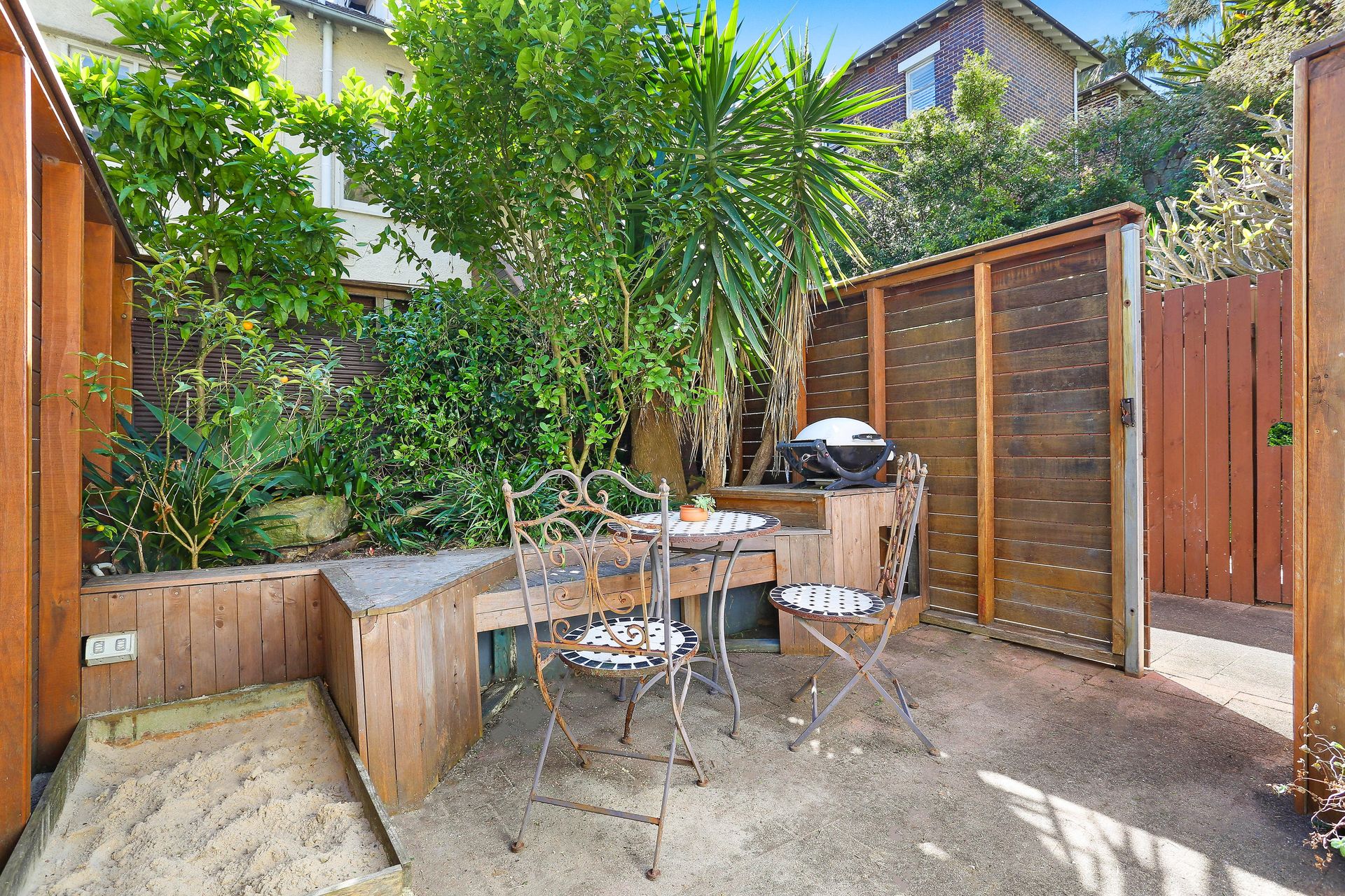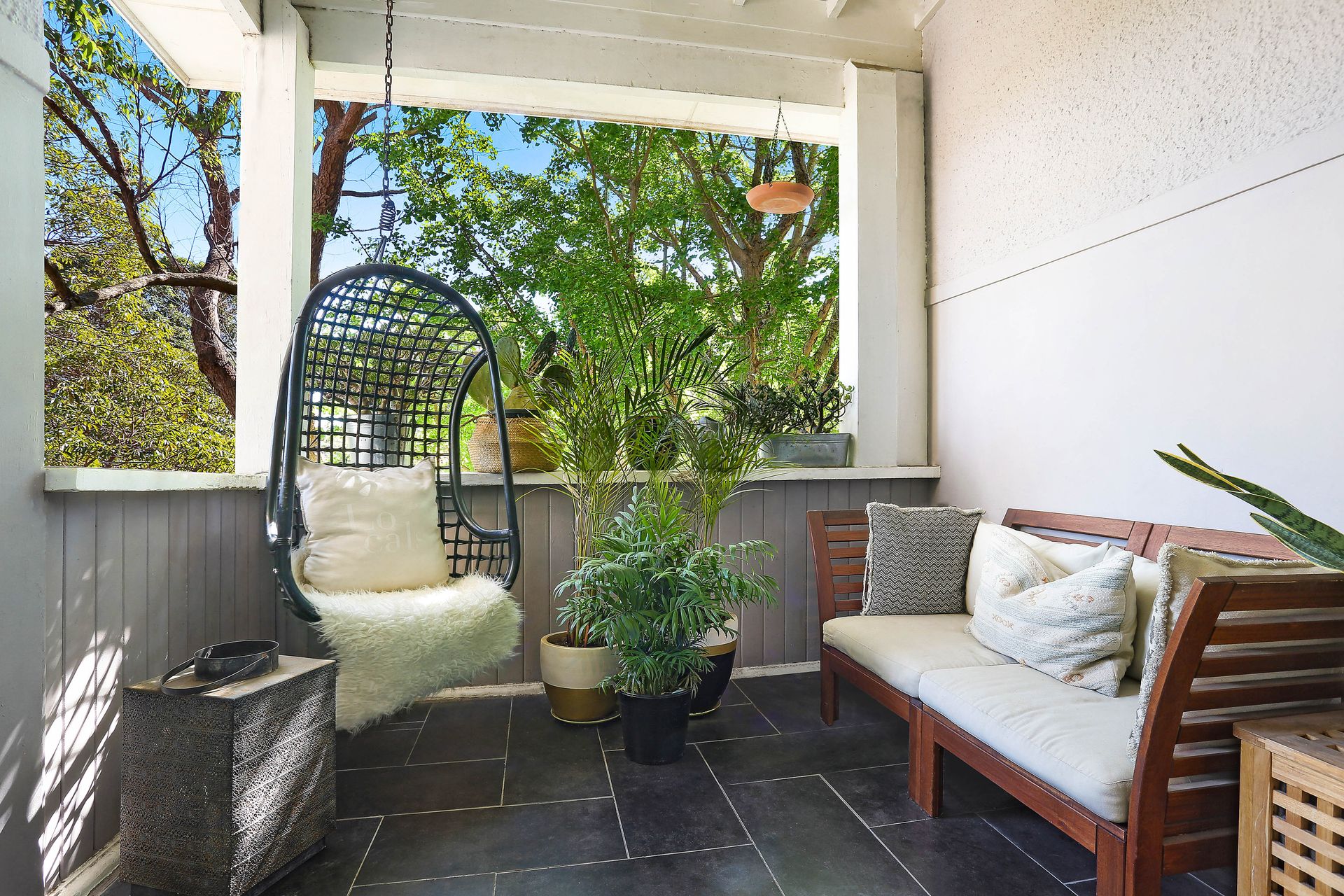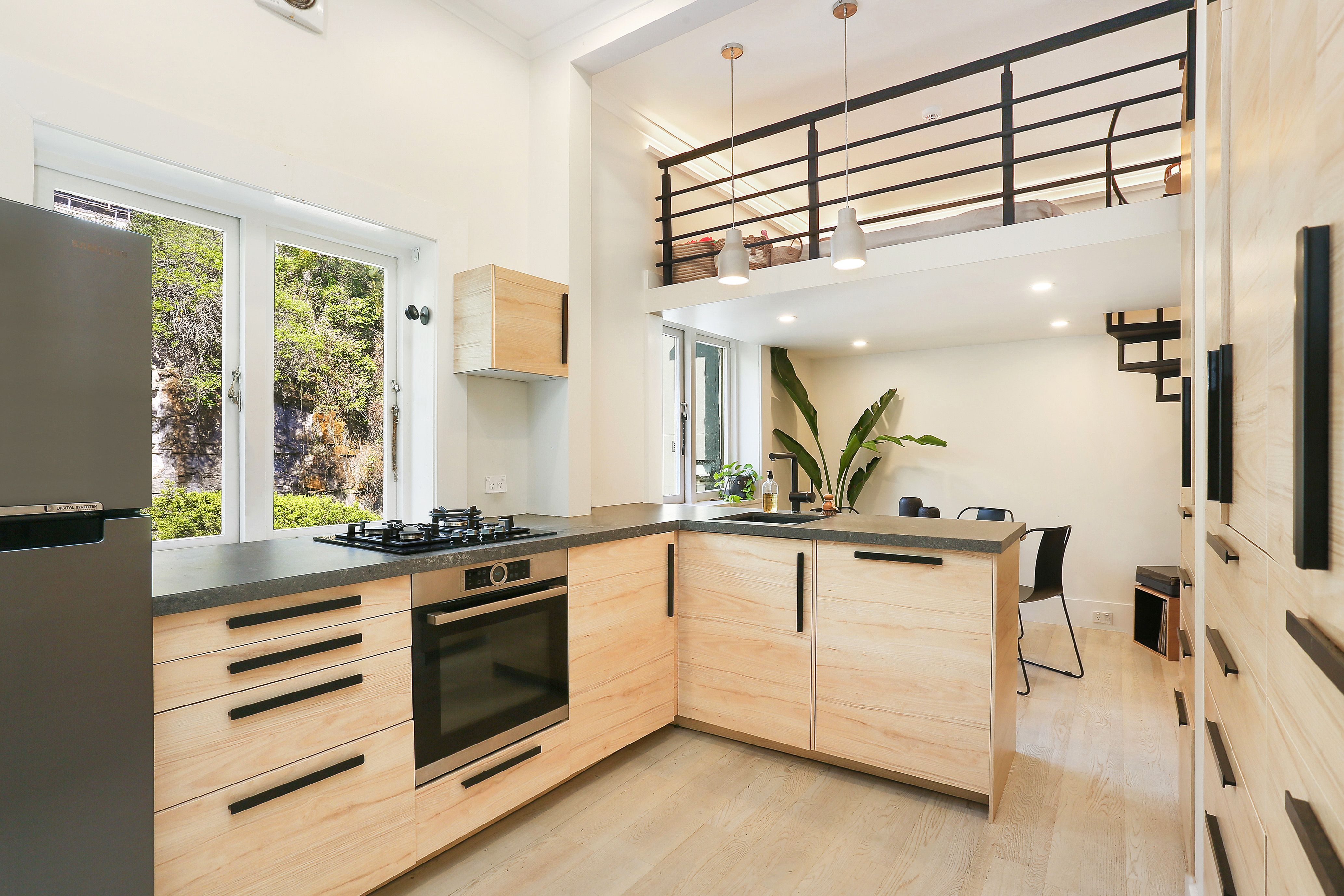 - Quiet setting, elevated from the street - Private front and rear entrances - King sized master and a fitted study - Free-flowing living space flowing to east facing balcony - High ornate ceilings, timber flooring through-out - Custom joinery and Caesarstone benchtops - Stylish contemporary bathroom with bathtub - Private paved courtyard with built in wood bench - Leafy surrounds, private rear entry - off street parking + internal laundry - Close to harbour and surf beaches - Stroll to cafes and parkland - Metres to express city transport