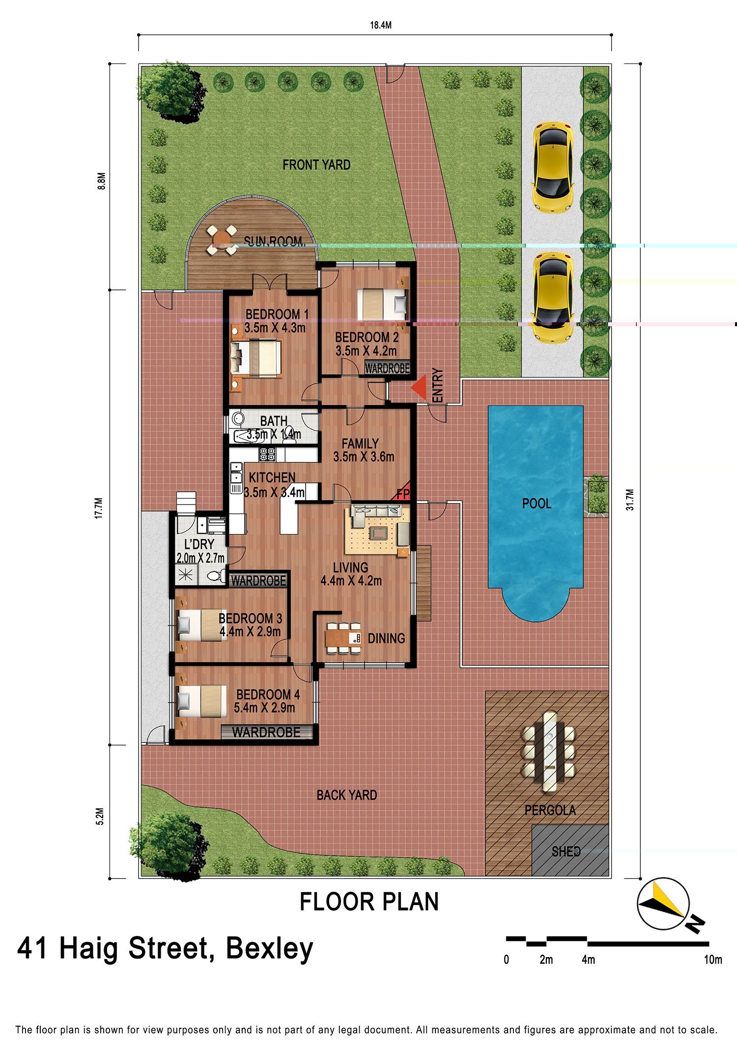 Features include: - Formal and casual living areas - Large kitchen with breakfast bar and pantry - 4 large bedrooms with built-in wardrobes - Additional sunroom/study room - 2 bathrooms - Air-conditioner and alarm system - Private backyard and inground swimming pool