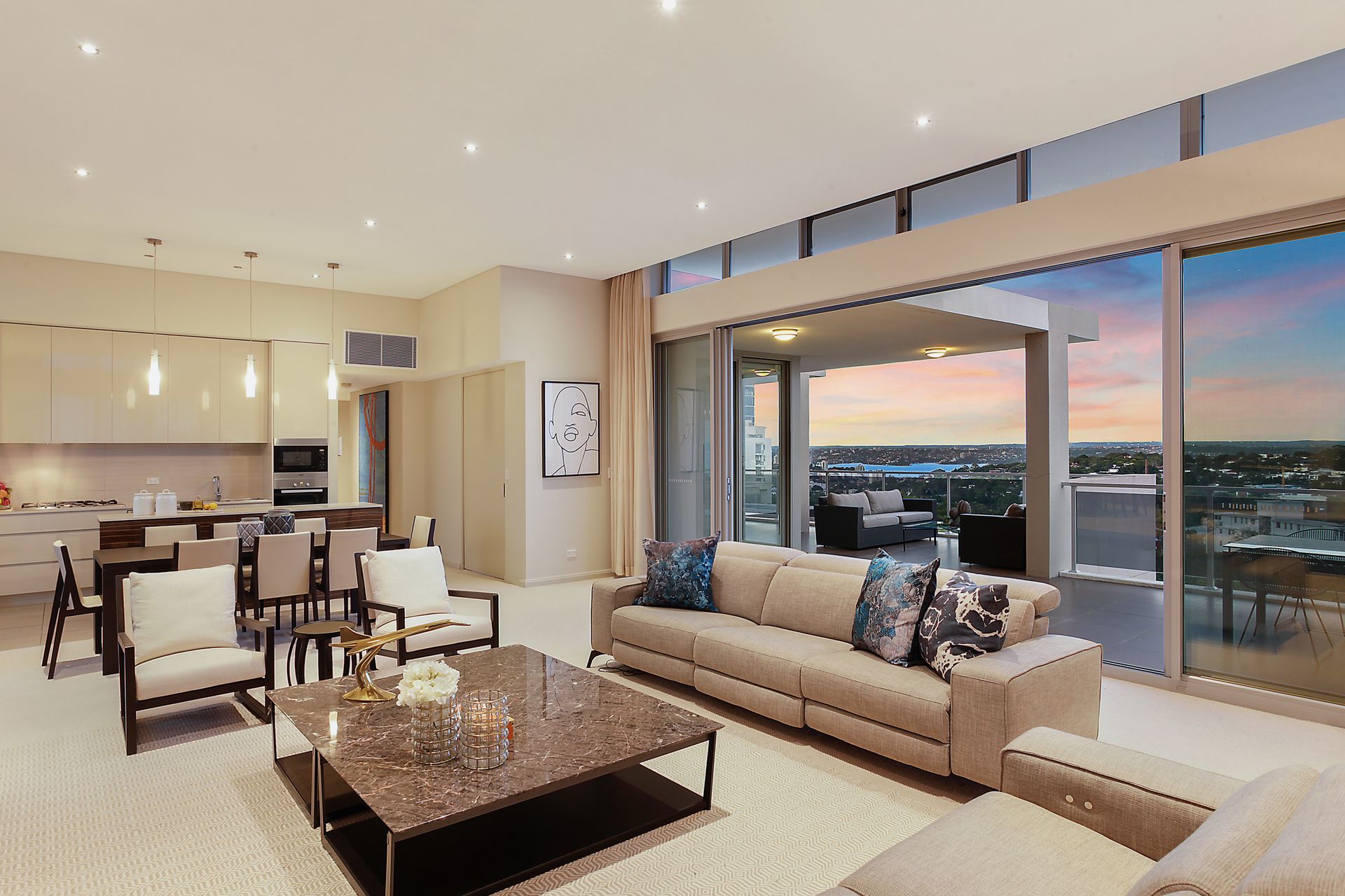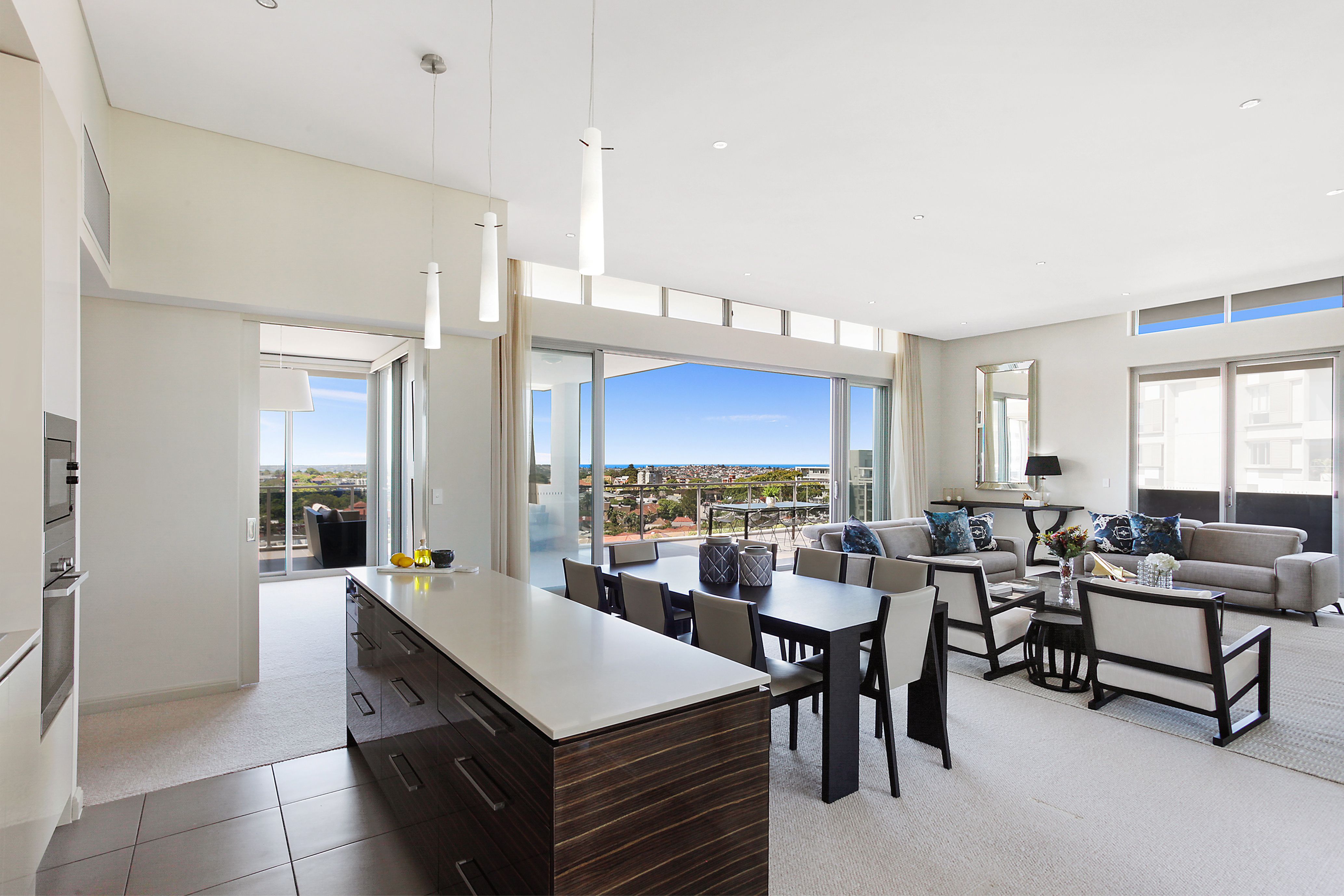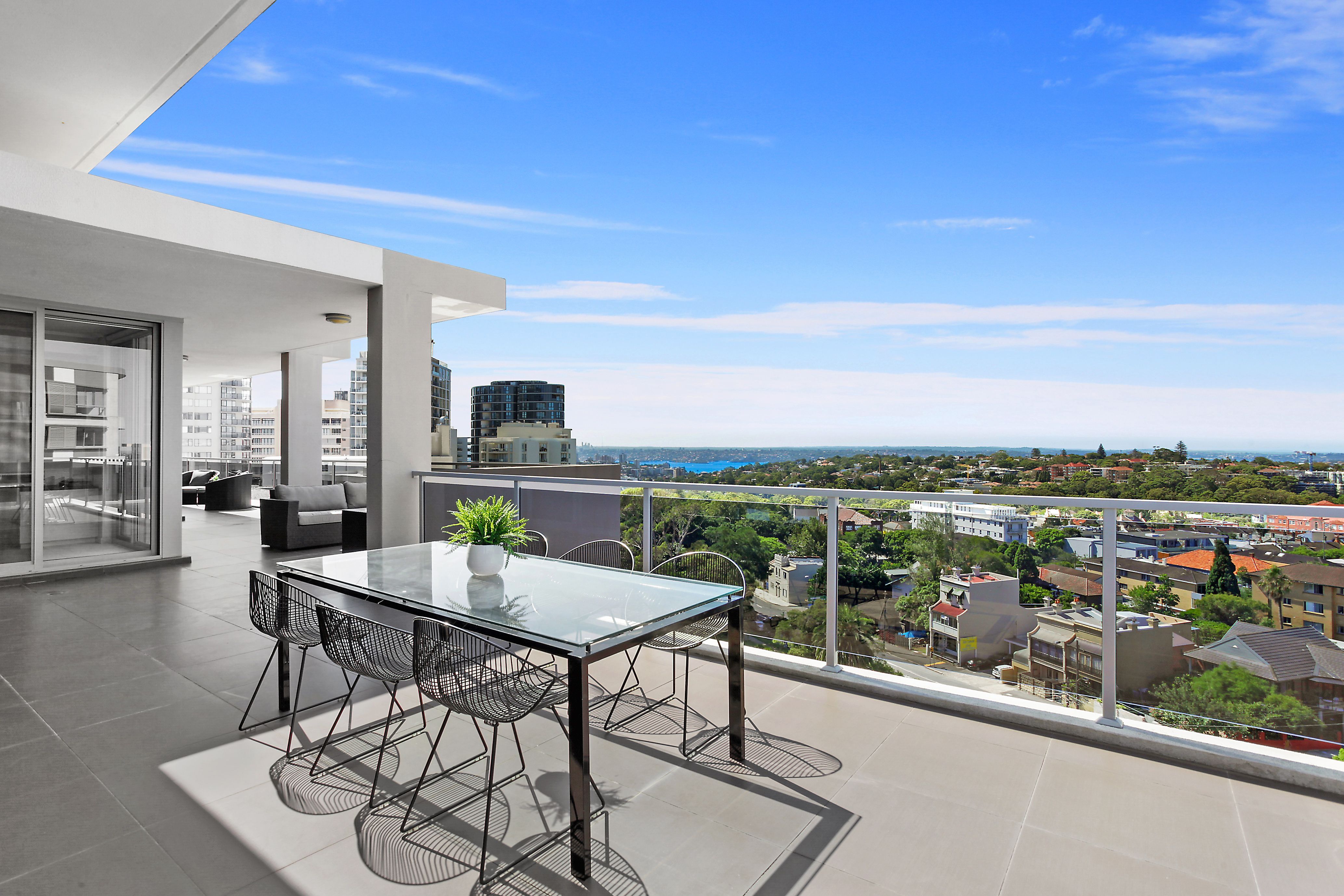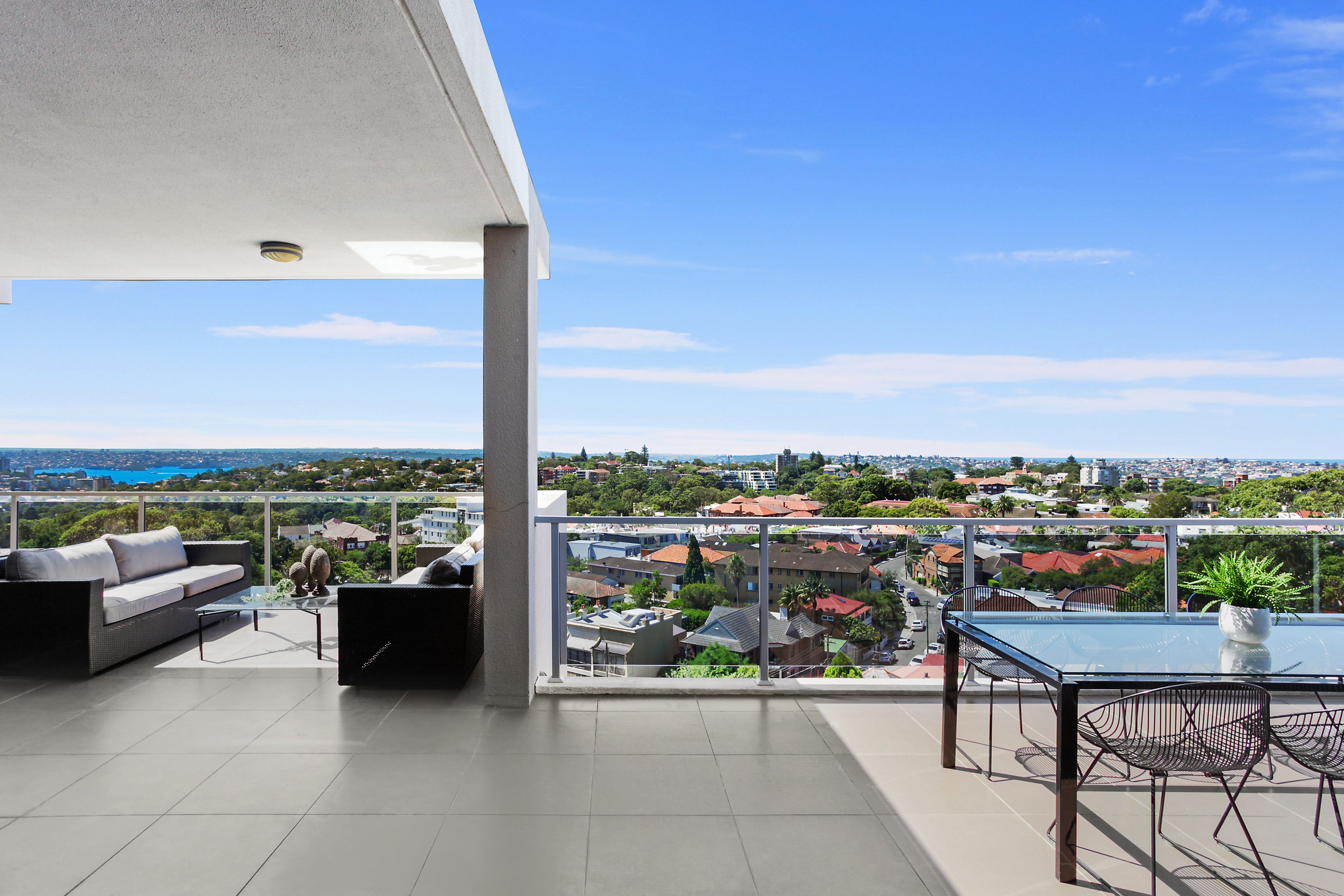 Embracing wraparound views capturing the boat scattered harbour and majestic ocean beyond, this luxury 'Arcadia' penthouse is one of the finest high rise addresses in Bondi Junction. A lift ascends directly to the front door where a step inside reveals quality finishes and grand 3.5 metre ceilings set over spacious interiors. There's enviable outdoor flow from every room, with the highlight being a sun soaked north facing terrace made for entertaining. The property is a walk to everything including transport, Waverley Park, Westfield, cafes and restaurants.