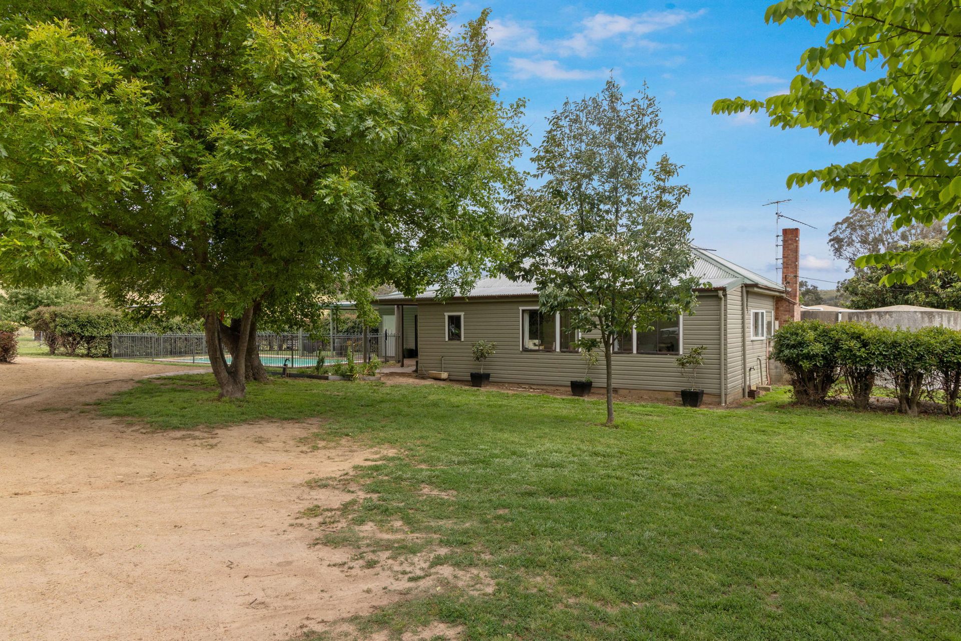 The Homestead: A charming, older-style four-bedroom home sits proudly amidst established gardens, exuding warmth and character. - 4 spacious bedrooms, including master with ensuite - 2.5 bathrooms for family convenience and practicality - Open-plan kitchen, dining, and living area filled with natural light - Wide verandahs and inground pool for outdoor entertaining and soaking up the serene rural outlook