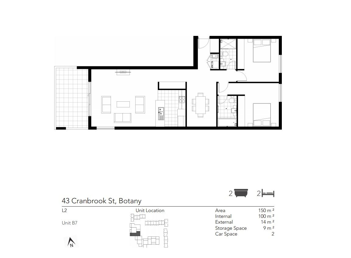 This huge brand new two bedroom plus study sunny apartment with two car spaces peacefully positioned and located on one of Botany's premier streets it's a short stroll to public transport, cafes, schools and eastern beaches.