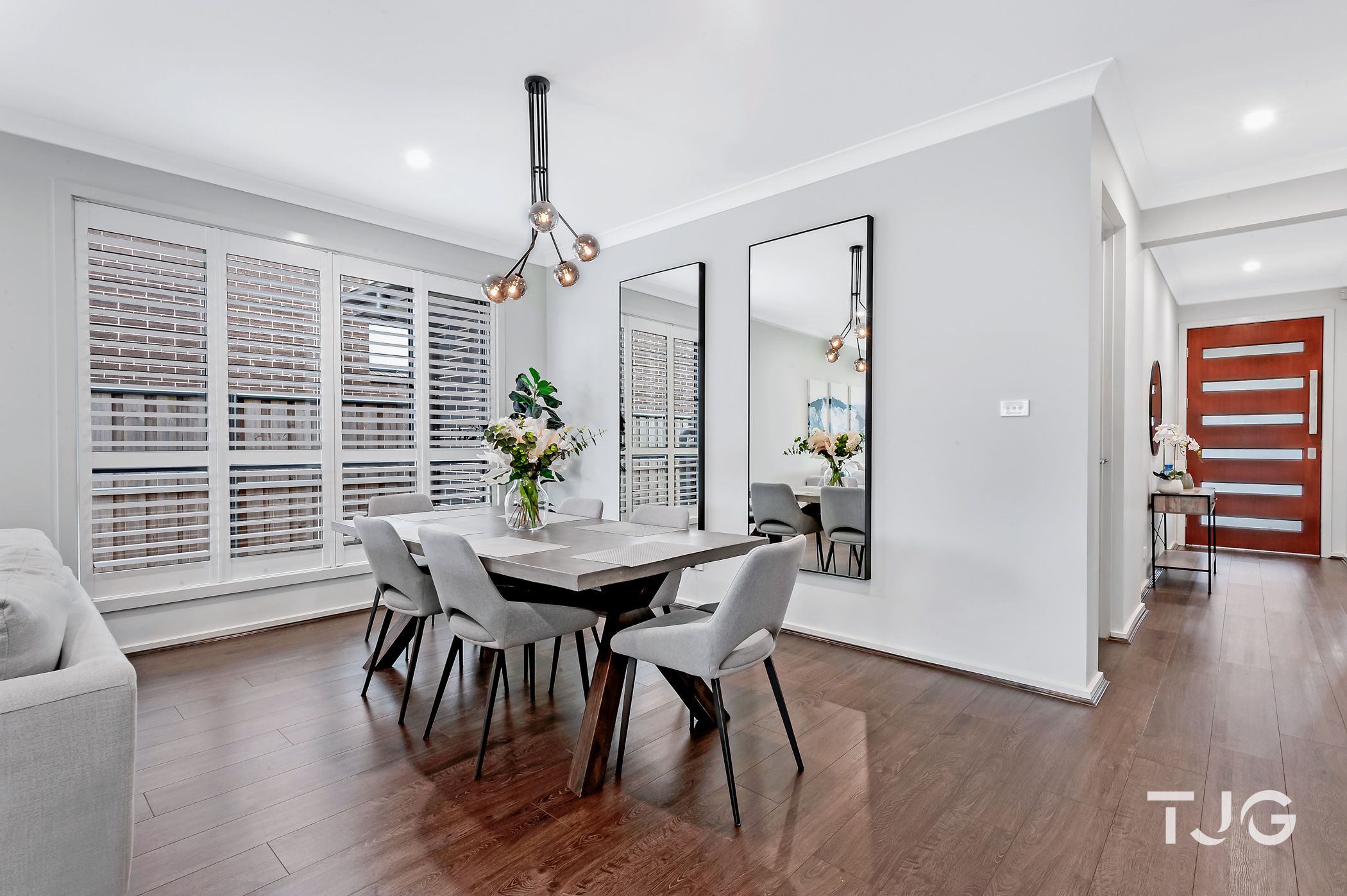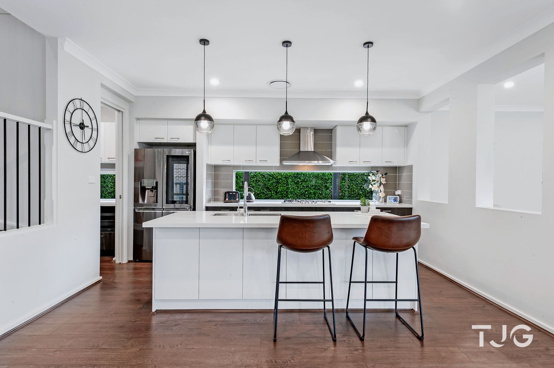 Entering this prestigious home you are greeted with beautiful timber flooring eye-grabbing upon entrance, moving over to the kitchen it features a magnificent caeserstone benchtop, stainless steel appliances, and a butler's pantry. The kitchen truly serves as the heart of the home, perfect for entertaining guests or cooking up a storm. The spacious living and dining area flows seamlessly into the covered alfresco through sliding doors, creating a seamless indoor-outdoor experience. Complete with a ceiling fan to beat the summer heat, the alfresco area offers the perfect space for outdoor dining and entertaining.
