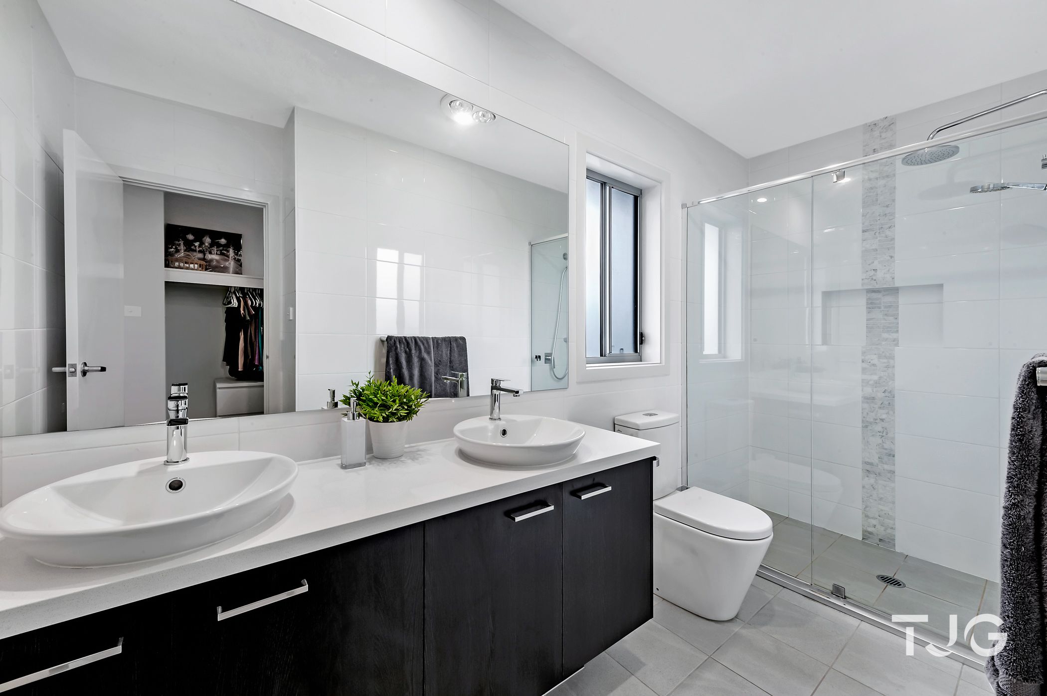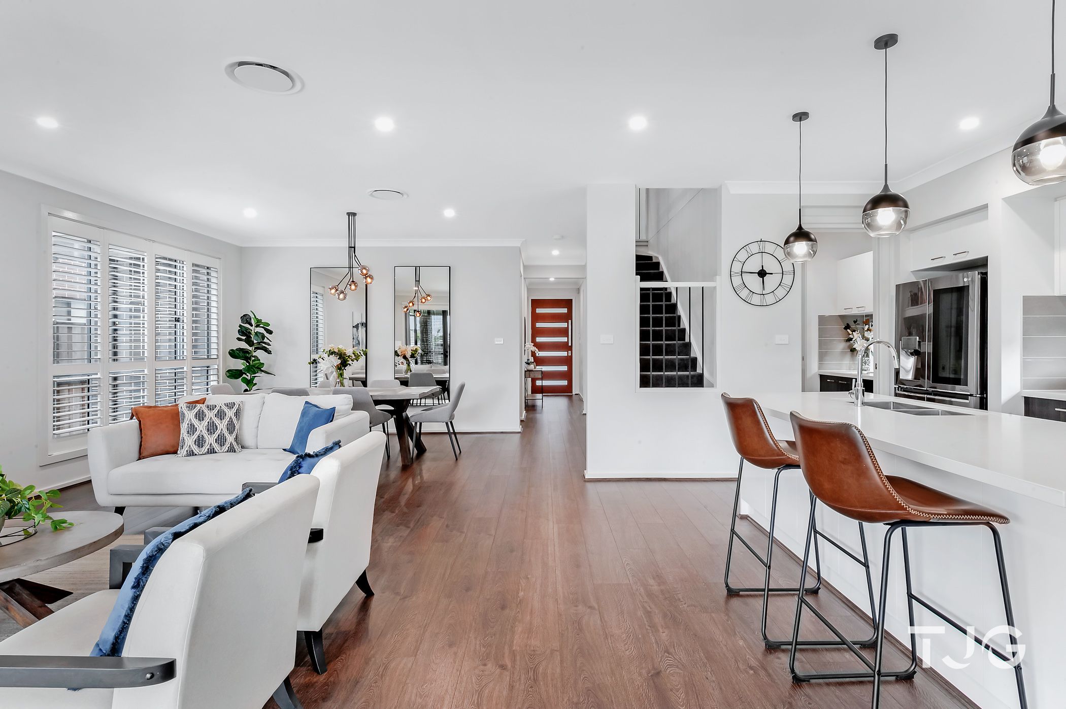 • Domaine Homes Build • Modern Facade • 5 bed, 3 bath, 2 car • Timber floors • Caesarstone Benchtop • Stainless steel appliances • Gas stove top • Butlers pantry • Wide splashback • Masters with ensuite with his and hers sink • Masters with walk-in robe • 3 Extra bedrooms with built-in robes at upper level • Guest bedroom at ground level with built-in-robe and bathroom • Ceiling fan in all bedrooms • Carpet flooring in bedrooms • Carpet stairs • Low maintenance backyard • Plantation shutters • LED Downlights • Ducted air conditioning • Solar panels 6.6kW