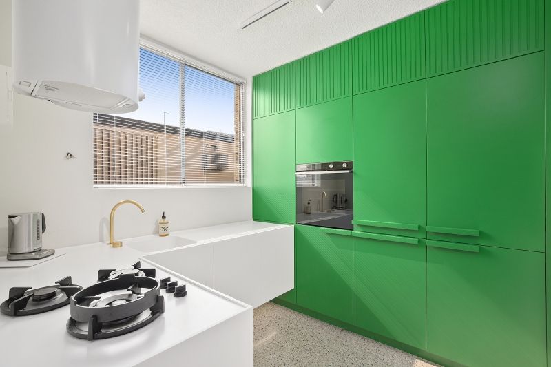 • Quiet and private street setting, easy access 1st floor • Parquetry floors, spacious open plan living and dining • Stunning high-end Corian formed luxury gas kitchen • Architectural appliances, eye-catching in its design • Two generous bedroom suites, one with wall of robes • Central fresh bathroom with combined laundry area • Large single lock up garage on title with storage room