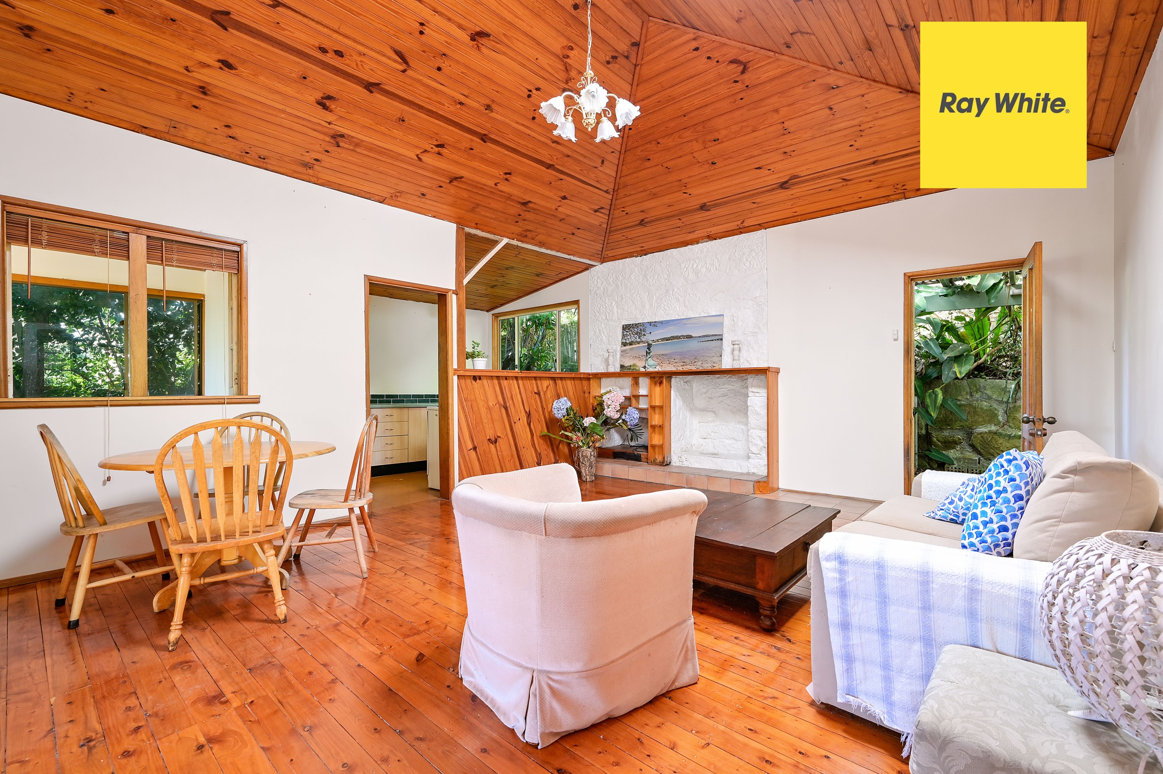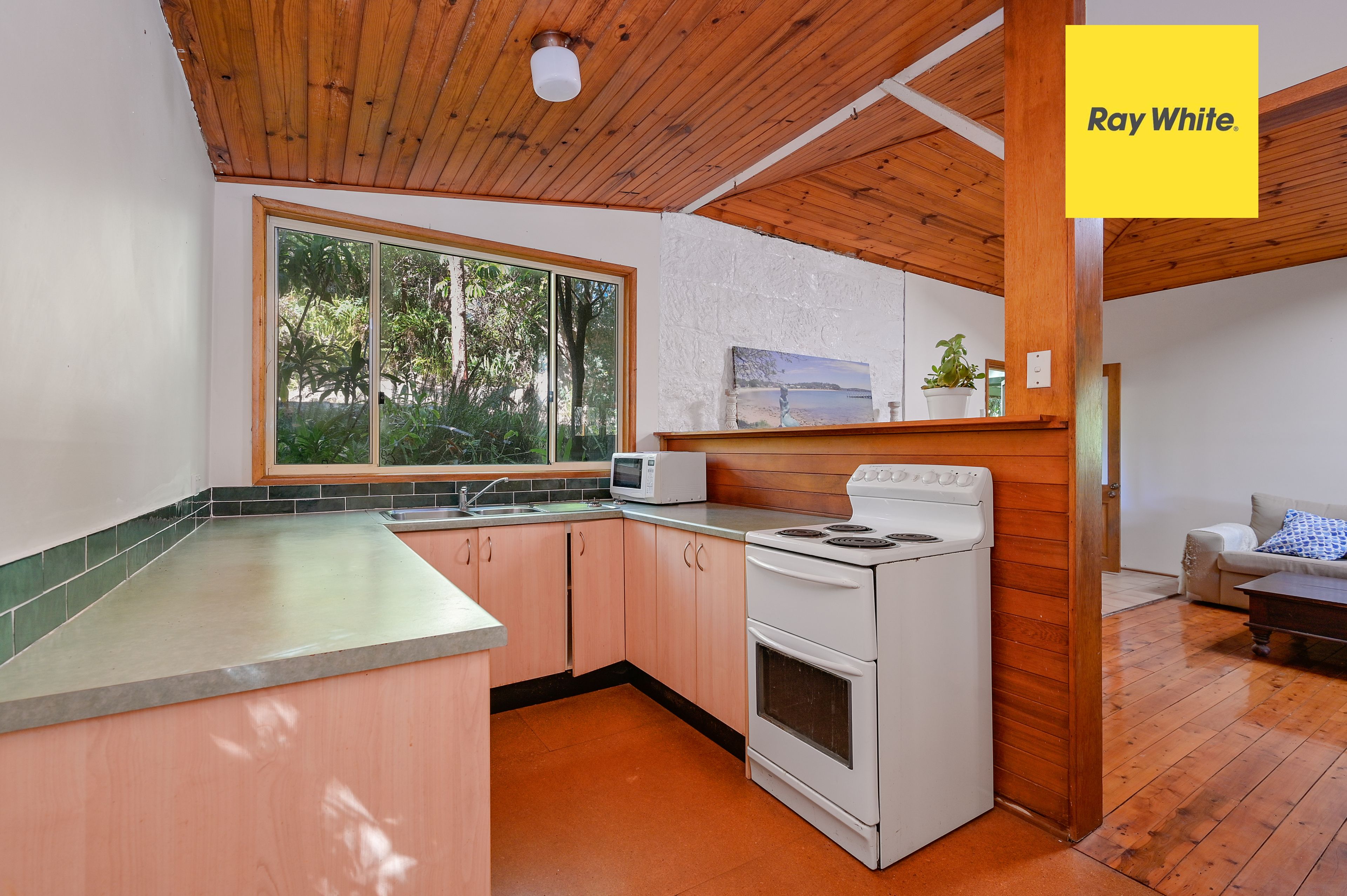 A private beach house with natural leafy views set in a whisper quiet cul-de-sac with an easy walk down to Horderns Beach & Bonnie Vale beach. Featuring: • Raked timber ceilings • Timber floors in the living areas • Brand new bathroom