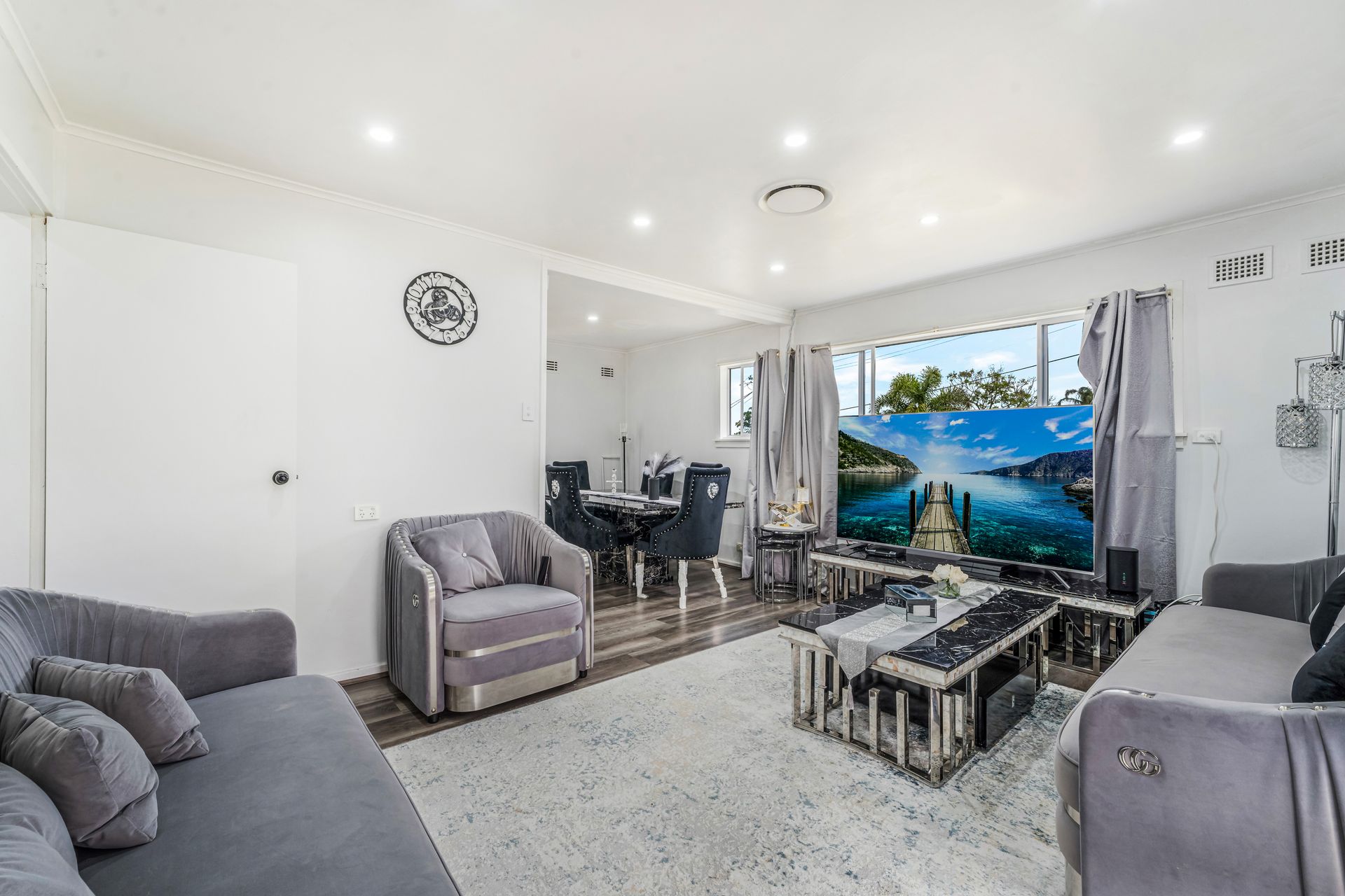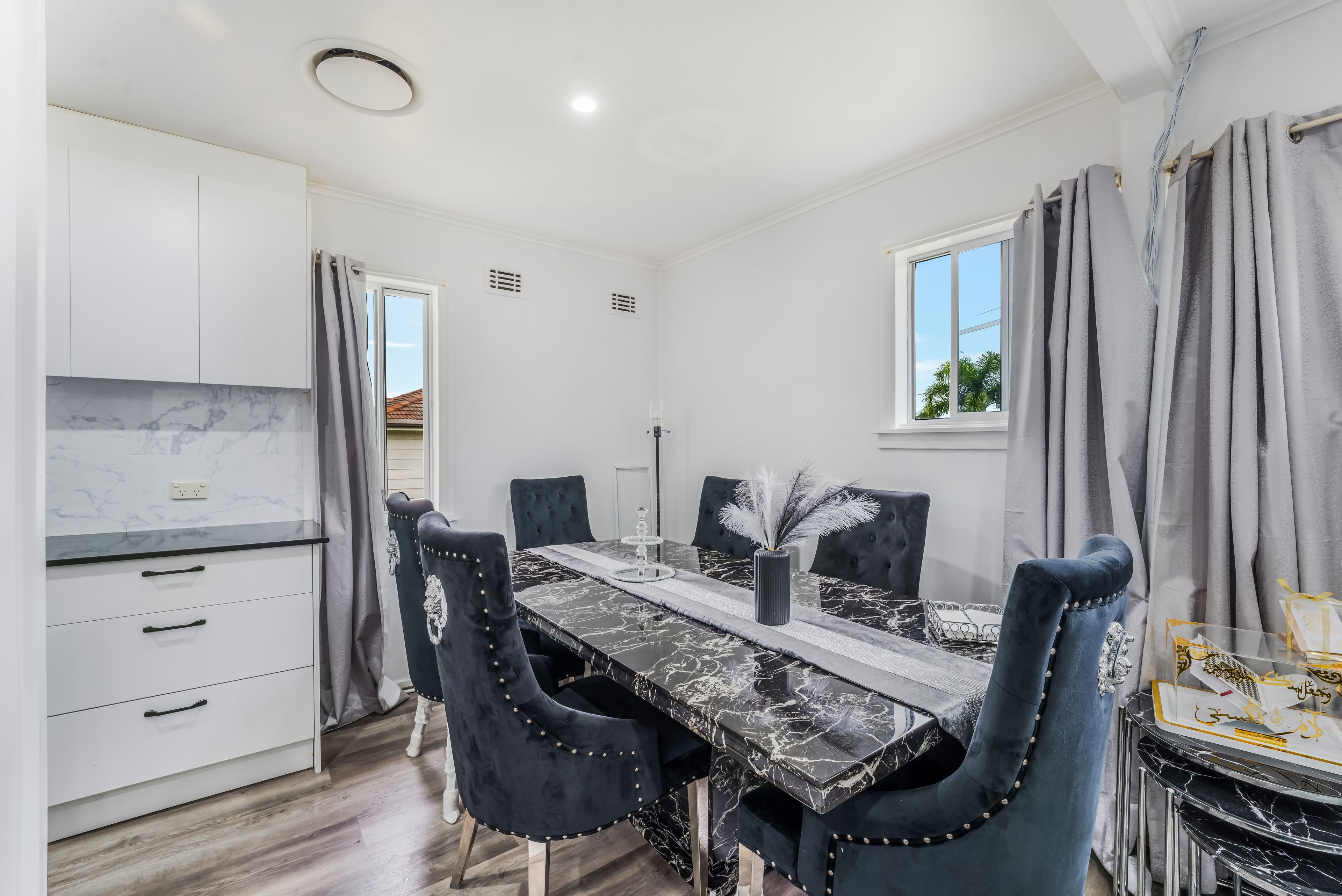 The heart of the home is the modern kitchen, featuring stylish stone benchtops and ample cupboard storage, providing a functional and inviting space for cooking and gathering. The central bathroom ensures convenience for the whole family.