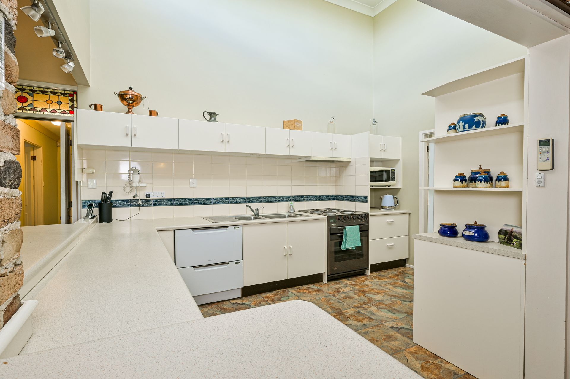 This character driven home offers four bedrooms, all with built-in-wardrobes and the main bedroom with ensuite. Stylish kitchen area with walk-in-pantry, formal lounge room and large family room. Three way main bathroom. The home features one slow combustion heater, two reverse cycle air conditioners,one open fire place, exposed beams and high ceilings. The home is surrounded by tranquil gardens, and also provides a wraparound verandah. Large private pergola area, 18m x 6m workshop plus 6m x 5.5m workshop. All set on a double block 2164m2 (over half acre). Truly a unique home in the perfect setting. Inspections promise to impress.
