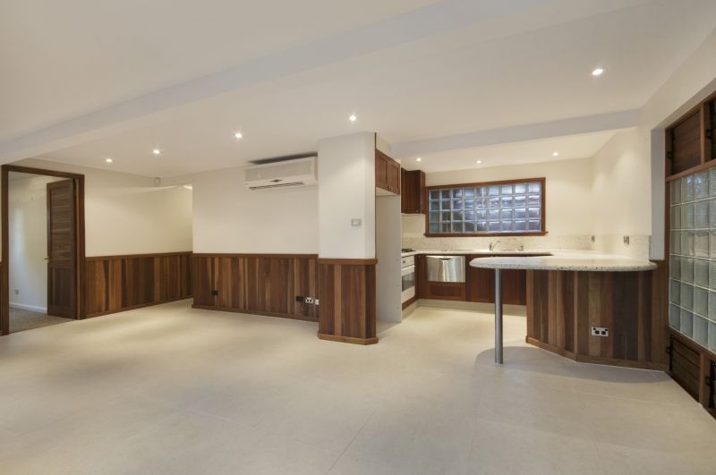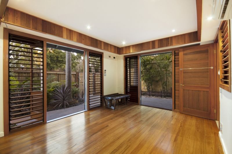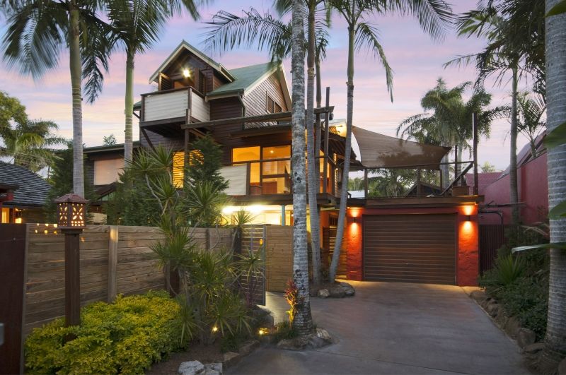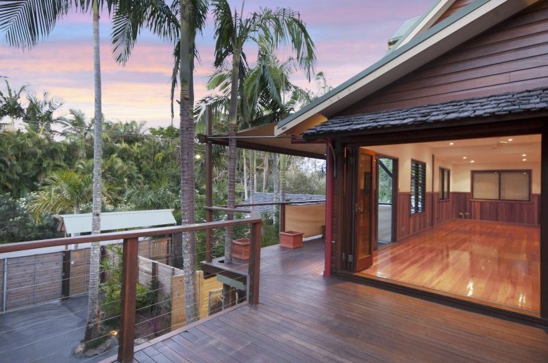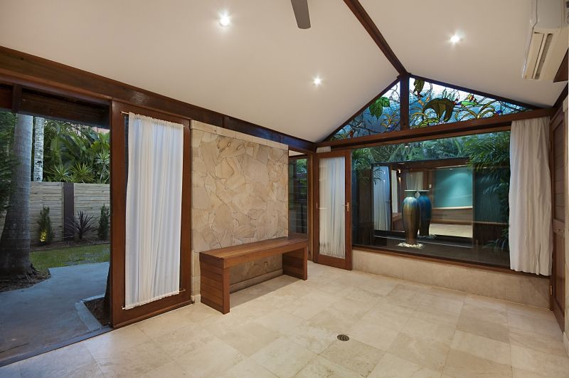 Surrounded by private courtyards and lush tropical gardens, the lower level enjoys a well equipped kitchen, open plan living & dining area with patio entertaining and three bedrooms, the master complete with spa ensuite.