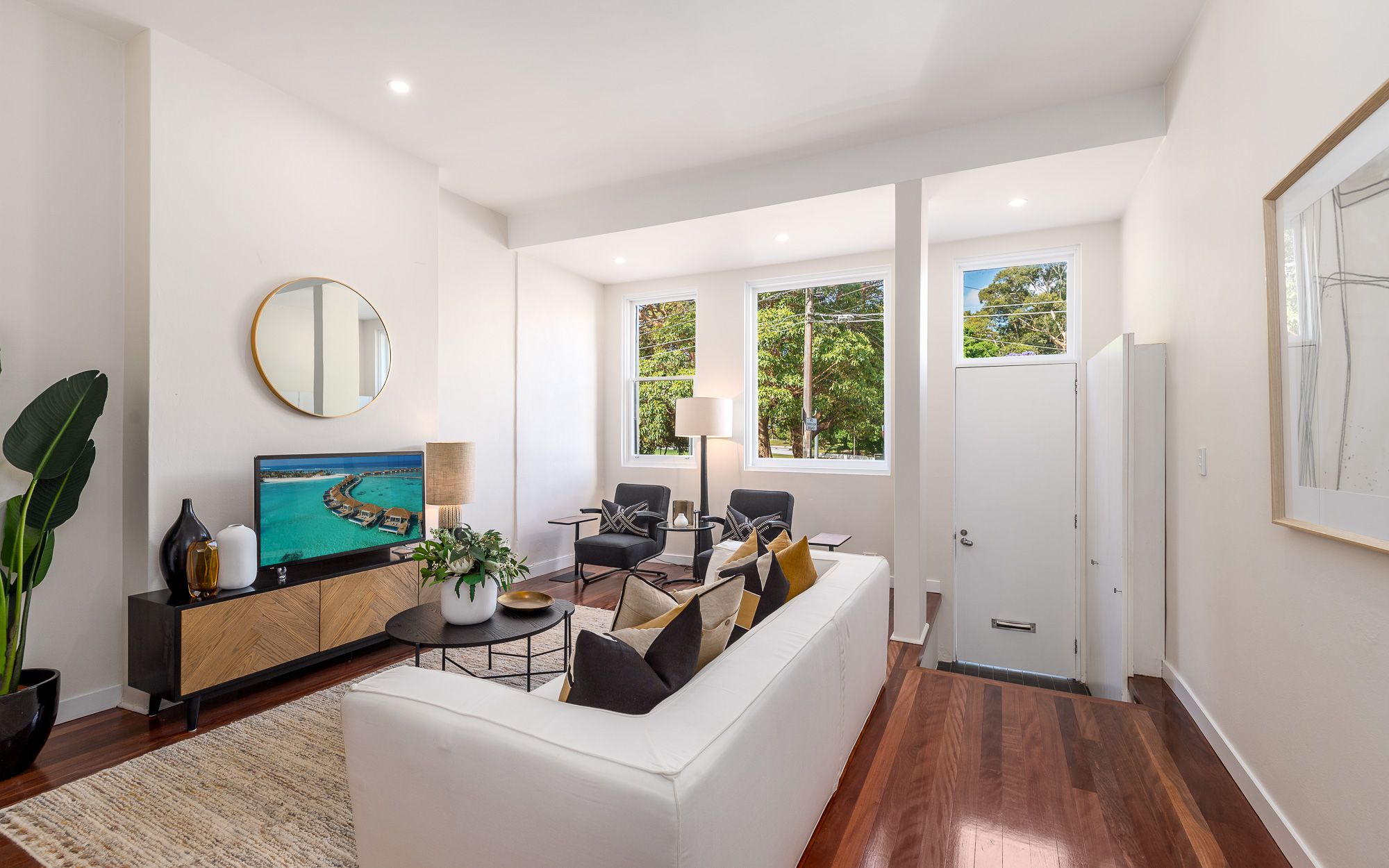 • Three double bedrooms main with balcony park views plus study/4th bedroom • Naturally lit with open plan lounge and dining room • Upper-level full bathroom, W.C downstairs • Sleek kitchen opening to side courtyard access • Beautiful staircase and classic period features • Paved rear courtyard offering rear lane car access • Bonus study perfect for work from home